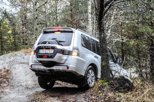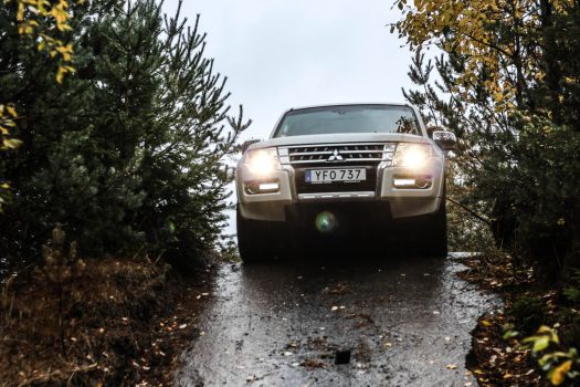 Vi kopplade in fyrhjulsdriften samt lågväxeln och förberedde oss mentalt (att köra uppför branta slutningar känns alltid mer dramatiskt än vad det ser ut) och hade toppen som sikte. Pajeron klarade sig upp till toppen lika lätt som en fågel hade gjort. Vi körde även bilen i lite mer allvarlig terräng på Terrängcamp Ekeby, en text som dyker upp inom den snara framtiden.