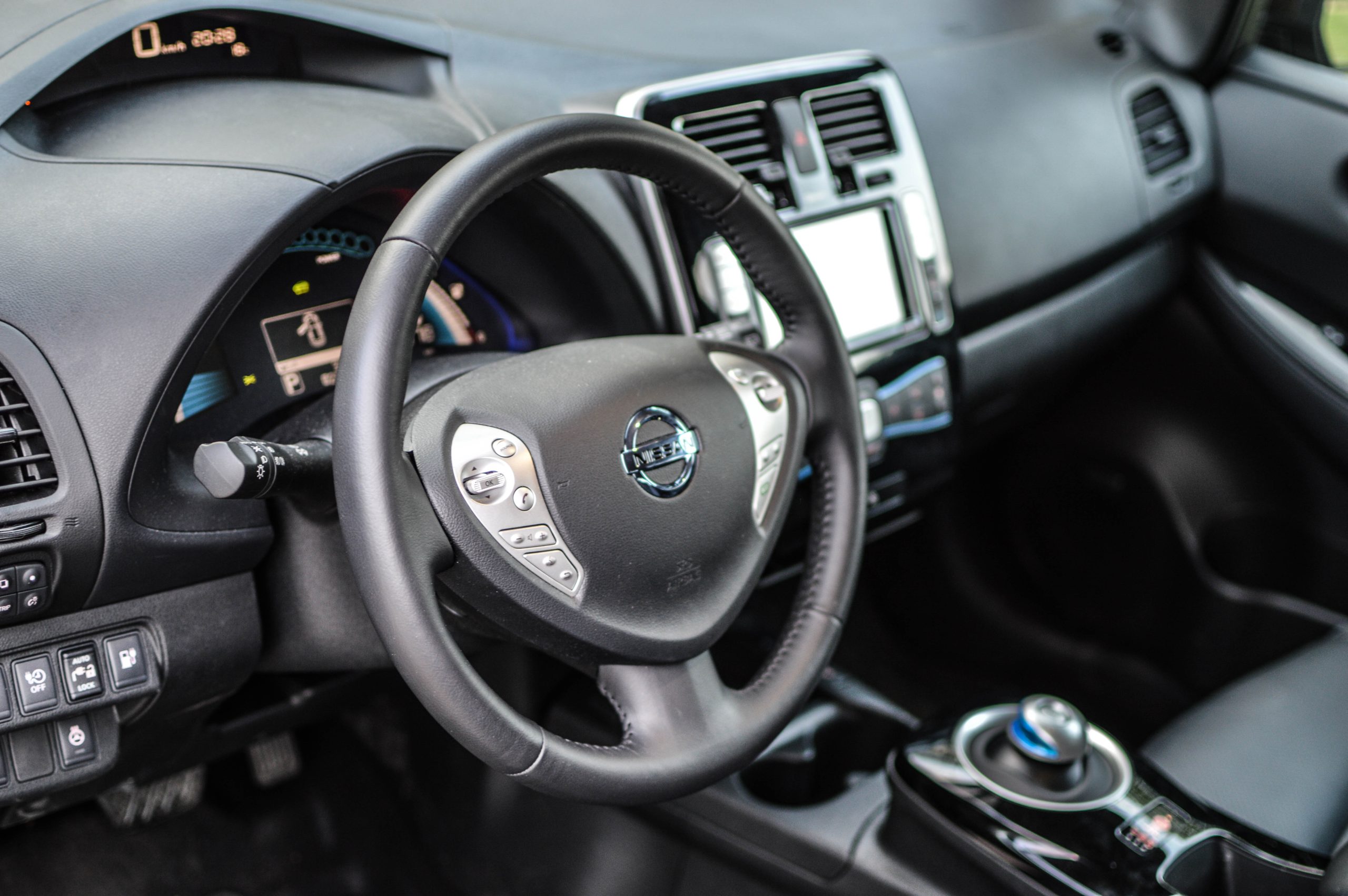 Interiören är en av Nissan Leafs svagare sidor. Bilen introducerades 2010 och det börjar märkas ganska tydligt att det har hänt en hel del sedan dess. Infotainmentsystemet känns eftermonterat, alla plaster är så hårda att de skulle kunna höra hemma i en fransk kärra, och ratten går bara att ställa i höjdled. När jag först satte mig i bilen tyckte jag att detta var oacceptabelt för en sprillans ny bil men sedan insåg jag att en Leaf faktiskt är en förhållandevis billig bil.