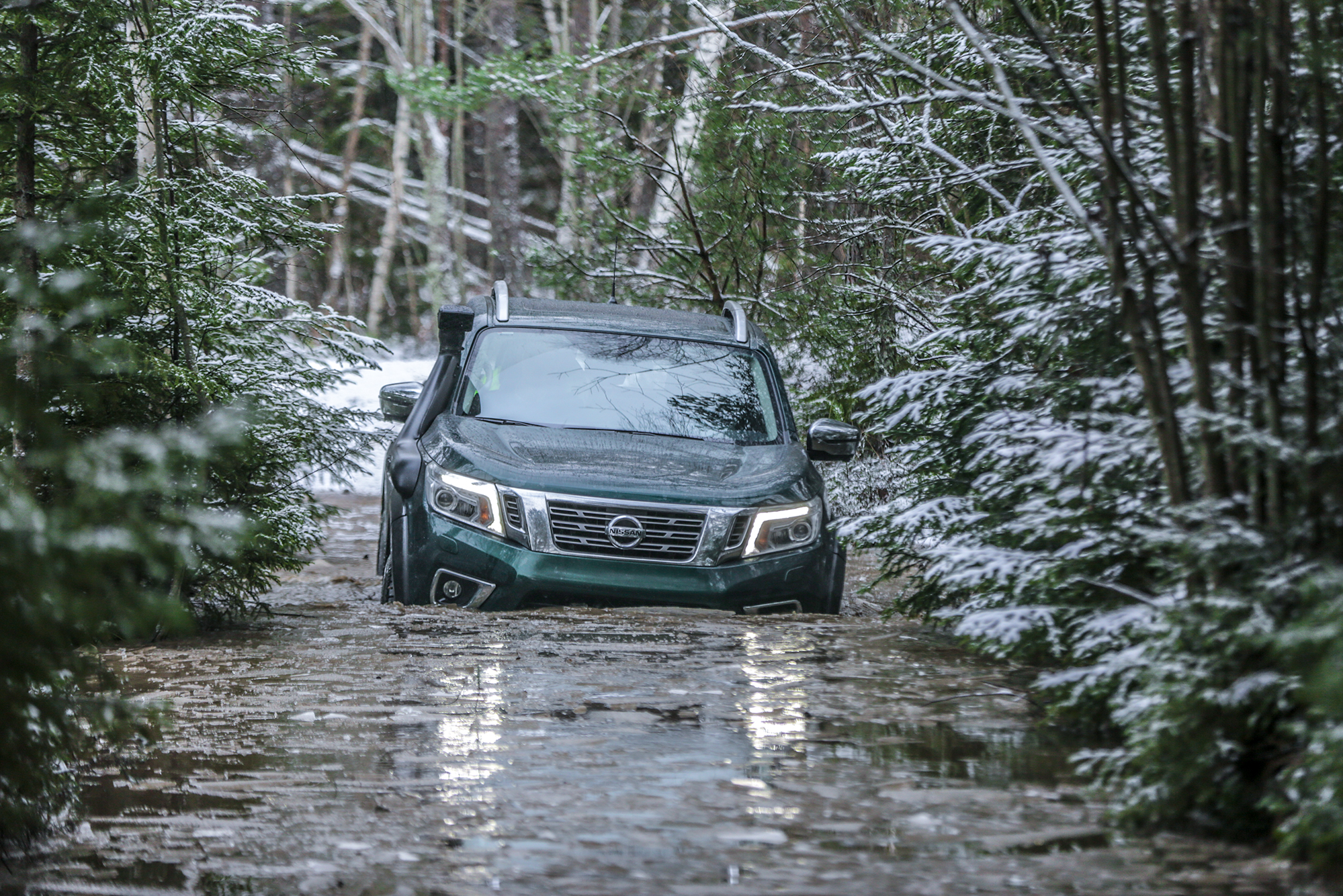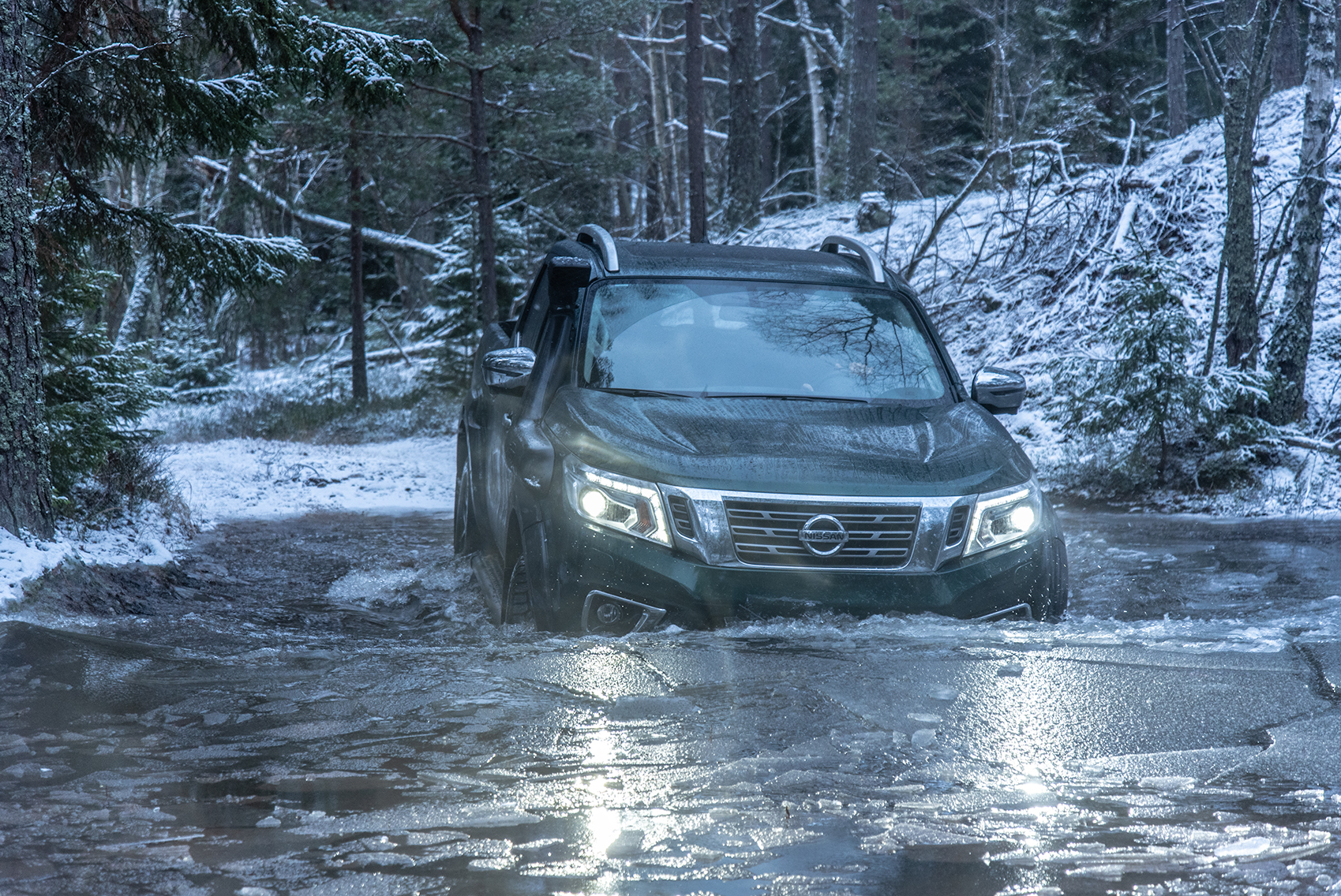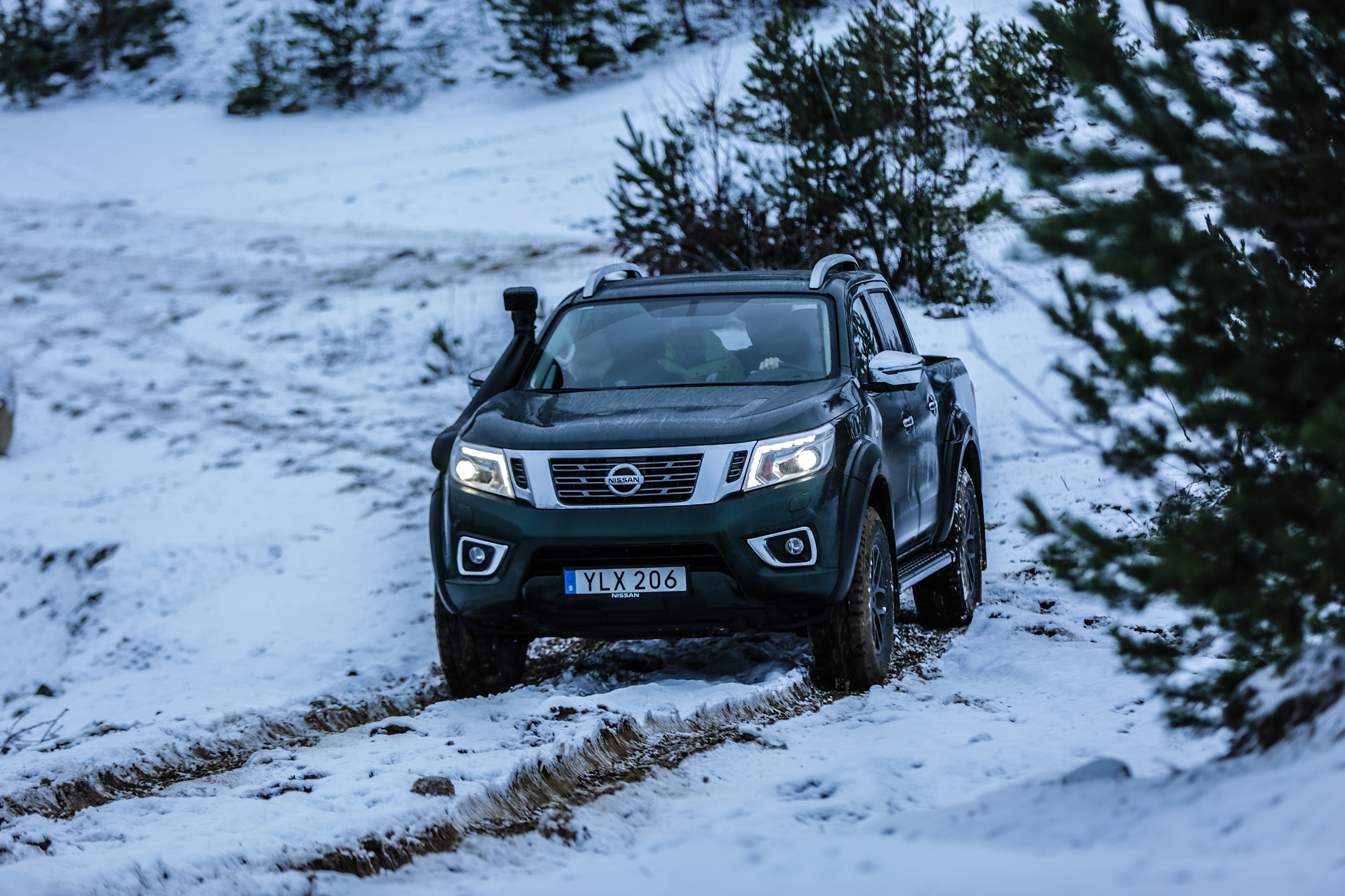 När man startar Navara AT32 låter den 2,3-liter stora fyrcylindriga dieselmotorn precis som en Volvo FH16. Den dånar likt en lastbil och vid gaspådrag kan man tro att man sitter på en buss om man blundar. Det är inte den mest kraftulla motorn i världen men terrängkörning kräver för det mesta finess och vridmoment, något som AT32 har gott om.