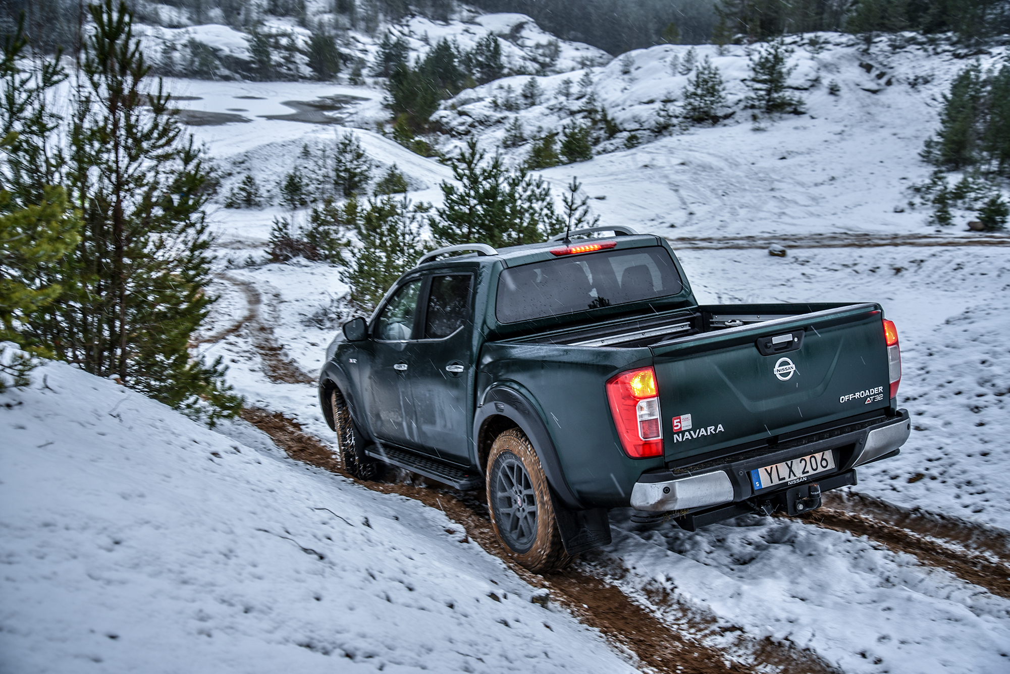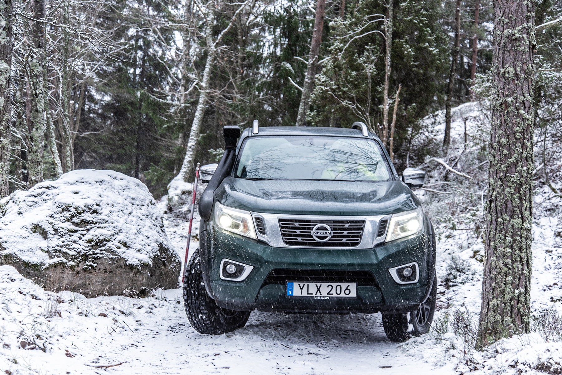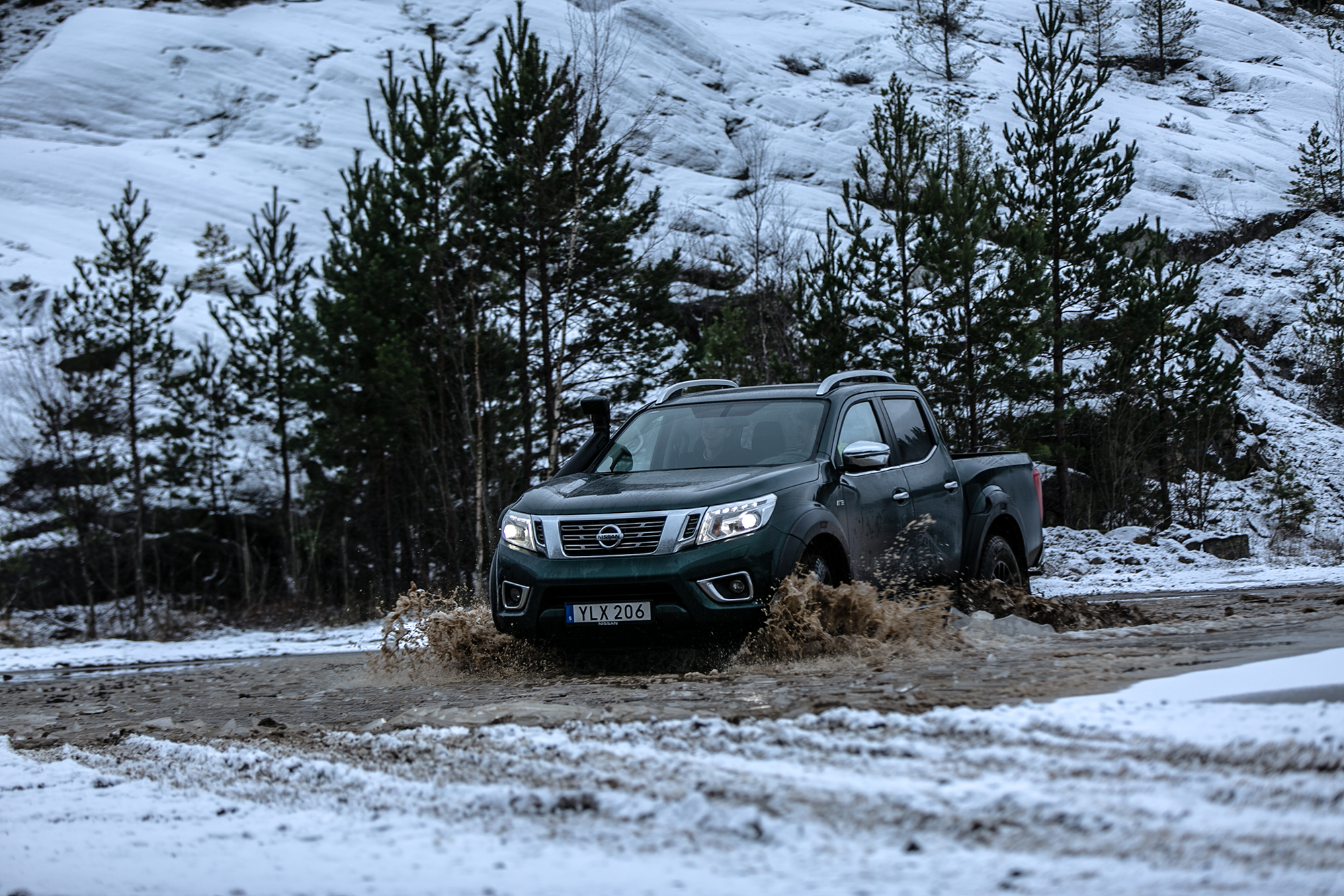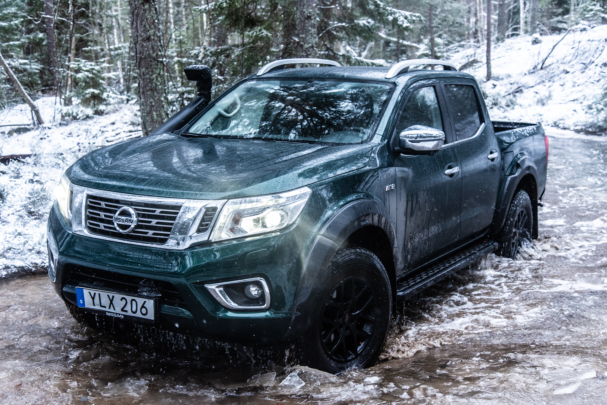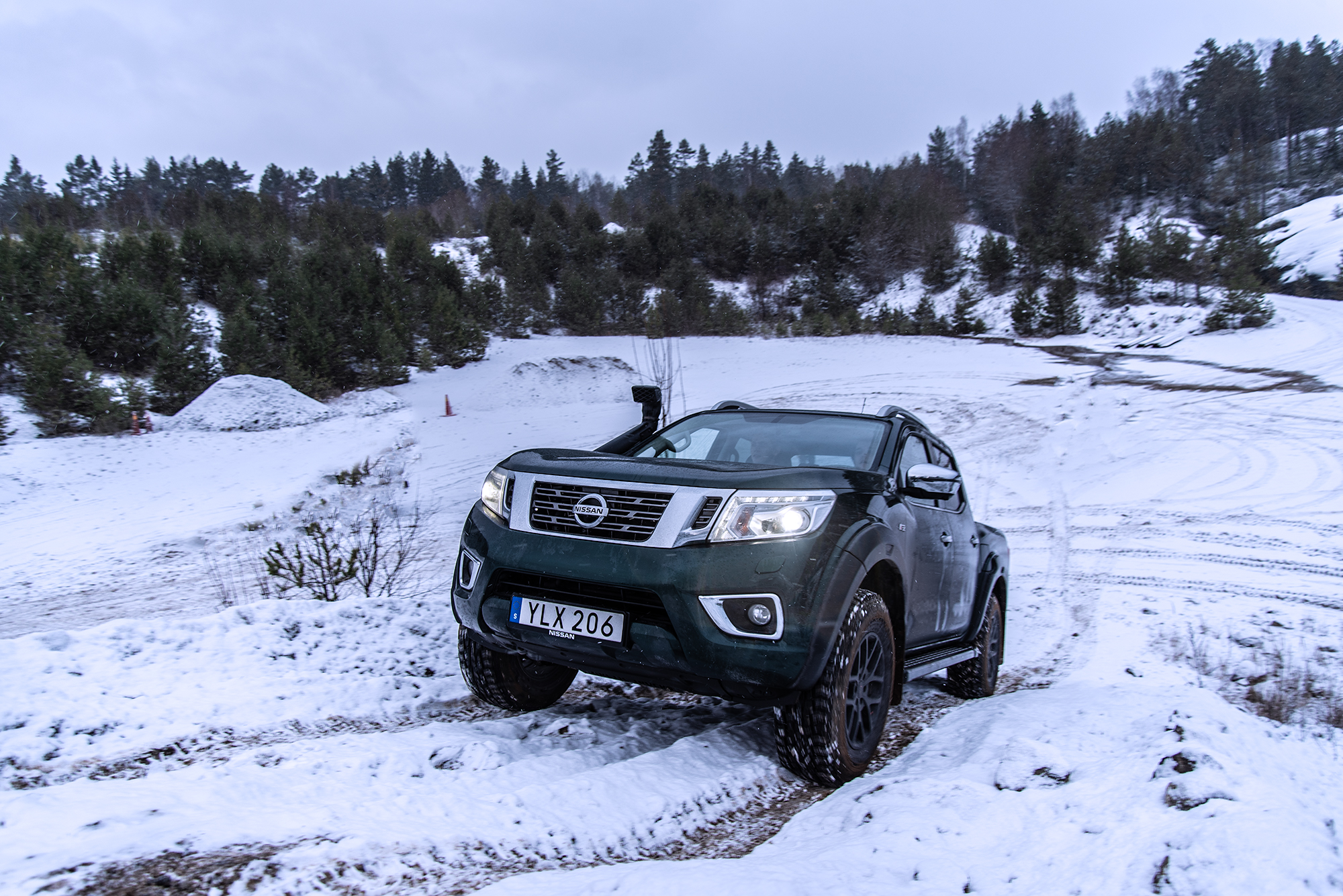 Givetvis beslutade vi oss för att testa AT32 i terrängen och därför begav vi oss i vanlig ordning till Jan på Terrängcamp Ekeby för att se om de modifikationer en vanlig Navara måste genomgå för att bli en AT32. På listan över extra utrustning finner man bland annan en snorkel som ger ett vaddjup på 80 centimeter, diffrentialspärrar, hasplåtar samt 40 millimeter högre markfrigång (däck plus fjädring) vilket är det som drar upp priset till astronomiska 573 000 SEK. Det må vara mycket pengar men andra fordon av liknande kaliber kan kosta flera gånger mer.