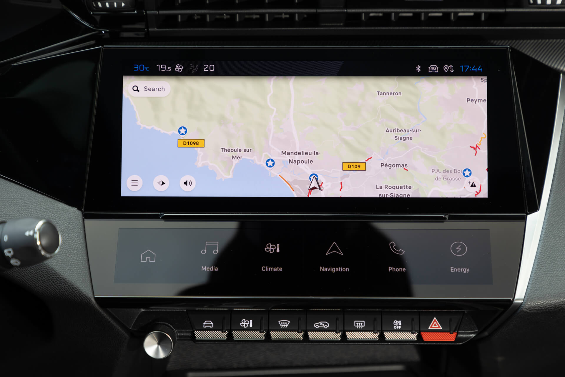 På plats fick vi provköra ett antal varianter varav laddhybriderna är de väntade storsäljarna i Sverige. Det kommer även en helt eldriven variant år 2023 à la Opel Astra. Jag började med instegsmodellen på 130 hästkrafter och en åttastegad automatlåda (den finns även med manuell). Den trecylindriga motorn låter sportigt men saknar lite krut för att verkligen hänga med i det aggressiva tempot på den franska motorvägen. Motsvarande dieselmotor har en ljudbild som minst sagt var jordbrukskompatibel och den manuella lådan har ganska långa kast men kopplingen är lättarbetad.