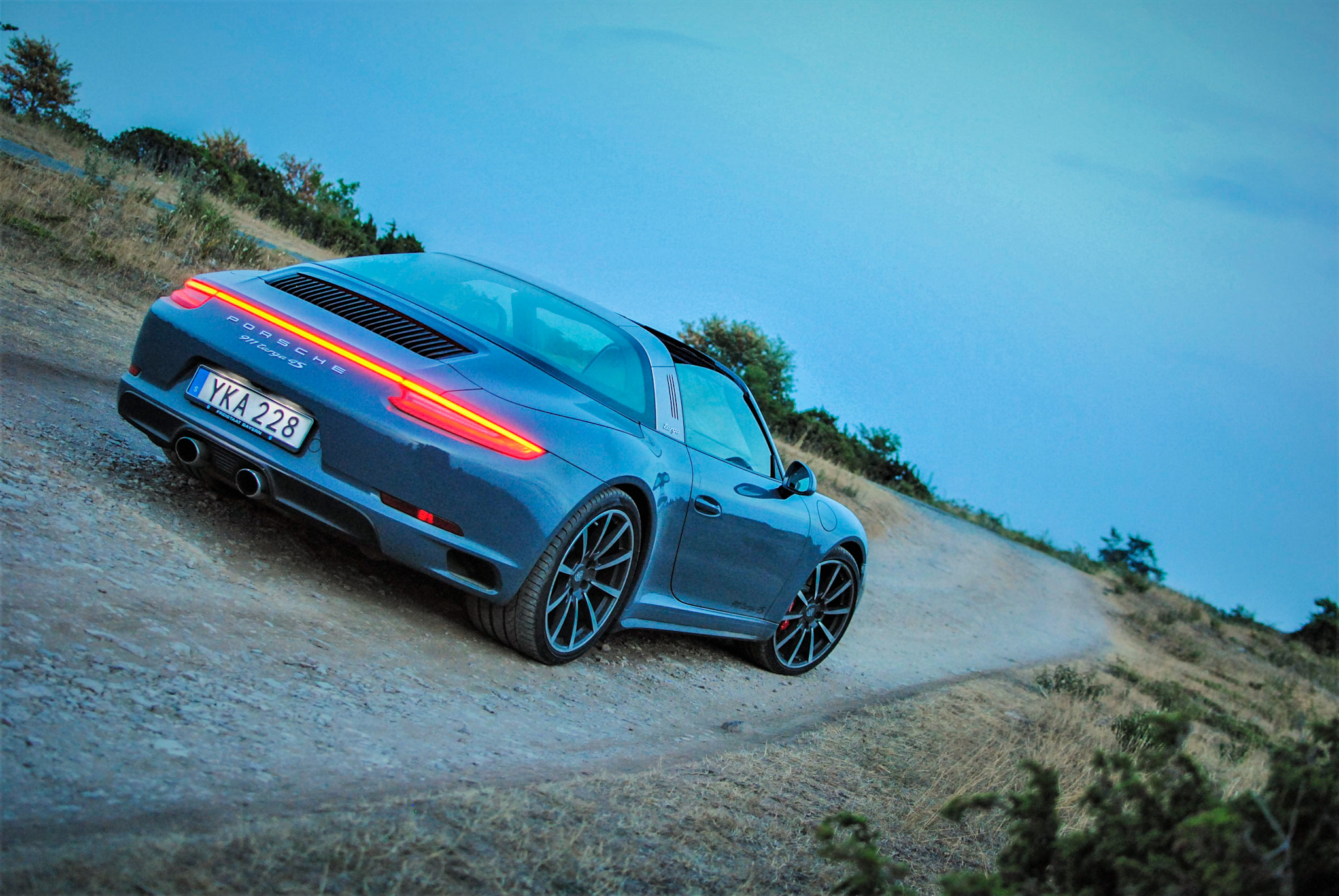 Det är den 18:e juli och jag befinner mig på Öland. Visarna på min klocka har precis slagit över till nio på kvällen. I min hand håller jag en Porsche-nyckel som ger mig tillgång till senaste 911 Targa 4S. Efter en kort promenad på grusvägen bakom ägarens hus börjar jag skymta den klassiska 911-designen bakom de snåriga enebuskarna. Ett par fotsteg senare visar sig vad som kan vara en av de snyggaste 911:orna som Porsche tillverkar just nu. Trots att bilen har ett avtagbart tak är coupéformen fortfarande intakt och den kraftiga Targa-bågen syns tydligt i profil och har exakt samma design och texttypsnitt som på 60-talet. Det är ingen tvekan om att ikonen har gjort comeback.