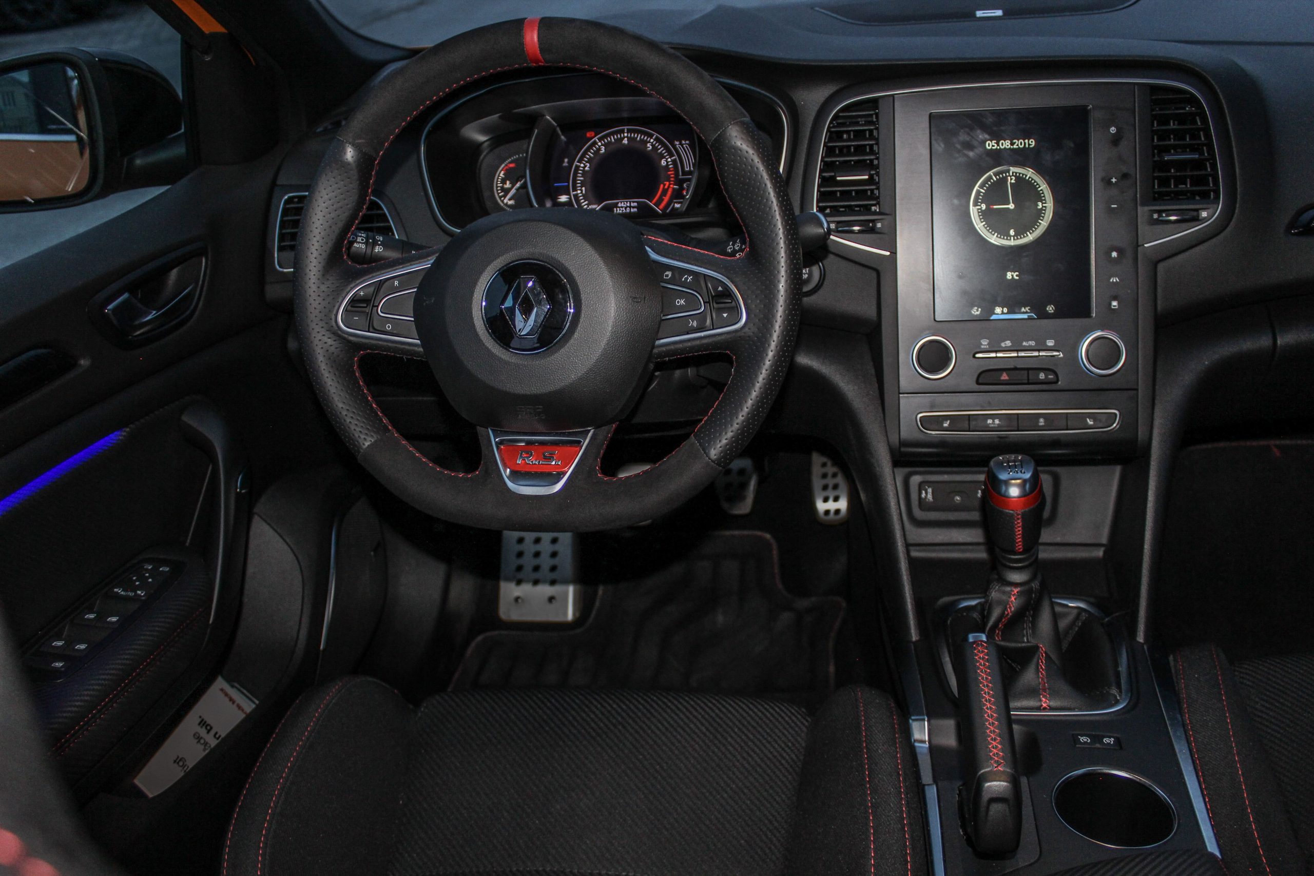 Interiören pryds av fler röda sömmar än vad som används för att sy ihop en röd galaklänning. Stolarna är skålade och omfamnar kroppen som en kokong, utan att vara så hårda att ryggen kräver en genomgång av en kiropraktor efter varje åktur. Ratten är beklädd i alcantara vilket innebär att greppet om den är så bra att man skulle kunna tro att den vore insmord i superlim. Infotainmentsystemet är detsamma som sitter i flera andra Renault-modeller och det fungerar okej, men är relativt lågupplöst.