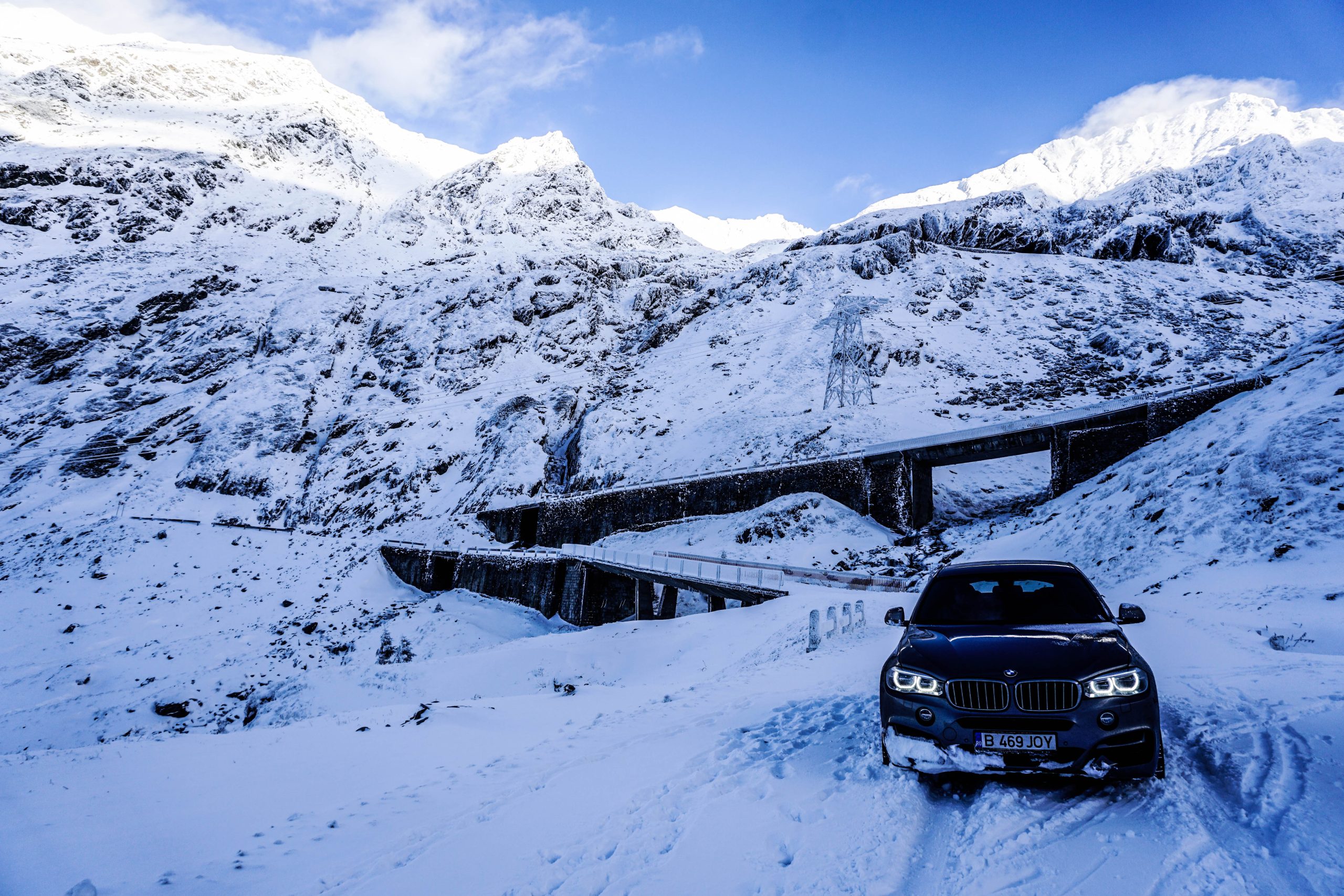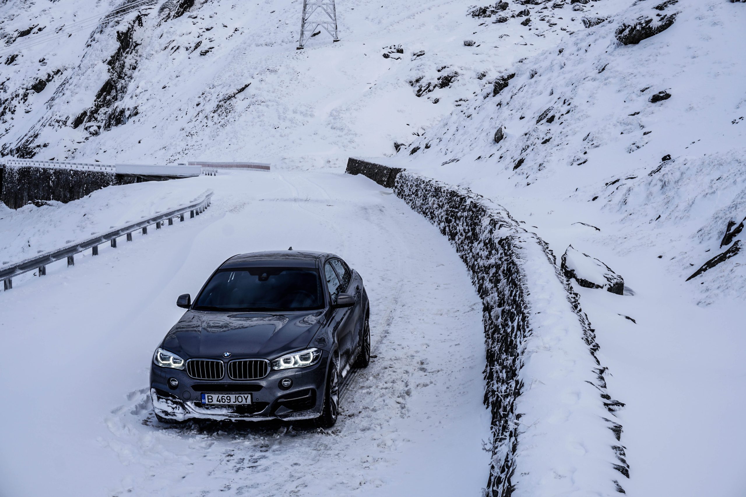 Under vår färd uppåt var det många tankar som var i omlopp. Vad skulle vi ta oss till om vi körde fast? Hur lång tid skulle vi behöva vänta på hjälp? Har vi täckning? Som tidigare konstaterat gynnade X6:ans markfrigång sannerligen vår framfart och bilen verkade tämligen oberörd av det faktum att den illegalt besteg en snötäckt rumänsk bergsväg. Jag hade fått lära mig av BMW Rumäniens presschef, ”Alex”, att tunneln på toppen var avstängd så det var just den vi hade som mål, 2000 meter över havet. Vid 1600 meter över havet började snön torna upp sig rejält och den linbana som tar turister till toppen passerade ovanför oss gång på gång med nyfikna individer som undrade vad i hela fridens namn vi sysslade med.