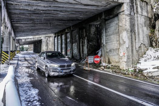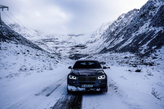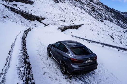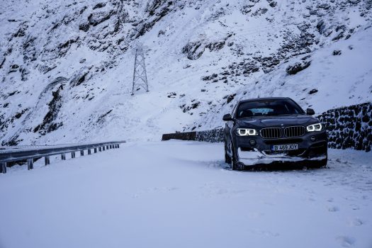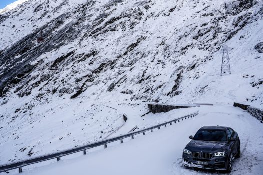 Under vår färd uppåt var det många tankar som var i omlopp. Vad skulle vi ta oss till om vi körde fast? Hur lång tid skulle vi behöva vänta på hjälp? Har vi täckning? Som tidigare konstaterat gynnade X6:ans markfrigång sannerligen vår framfart och bilen verkade tämligen oberörd av det faktum att den illegalt besteg en snötäckt rumänsk bergsväg. Jag hade fått lära mig av BMW Rumäniens presschef, ”Alex”, att tunneln på toppen var avstängd så det var just den vi hade som mål, 2000 meter över havet. Vid 1600 meter över havet började snön torna upp sig rejält och den linbana som tar turister till toppen passerade ovanför oss gång på gång med nyfikna individer som undrade vad i hela fridens namn vi sysslade med.