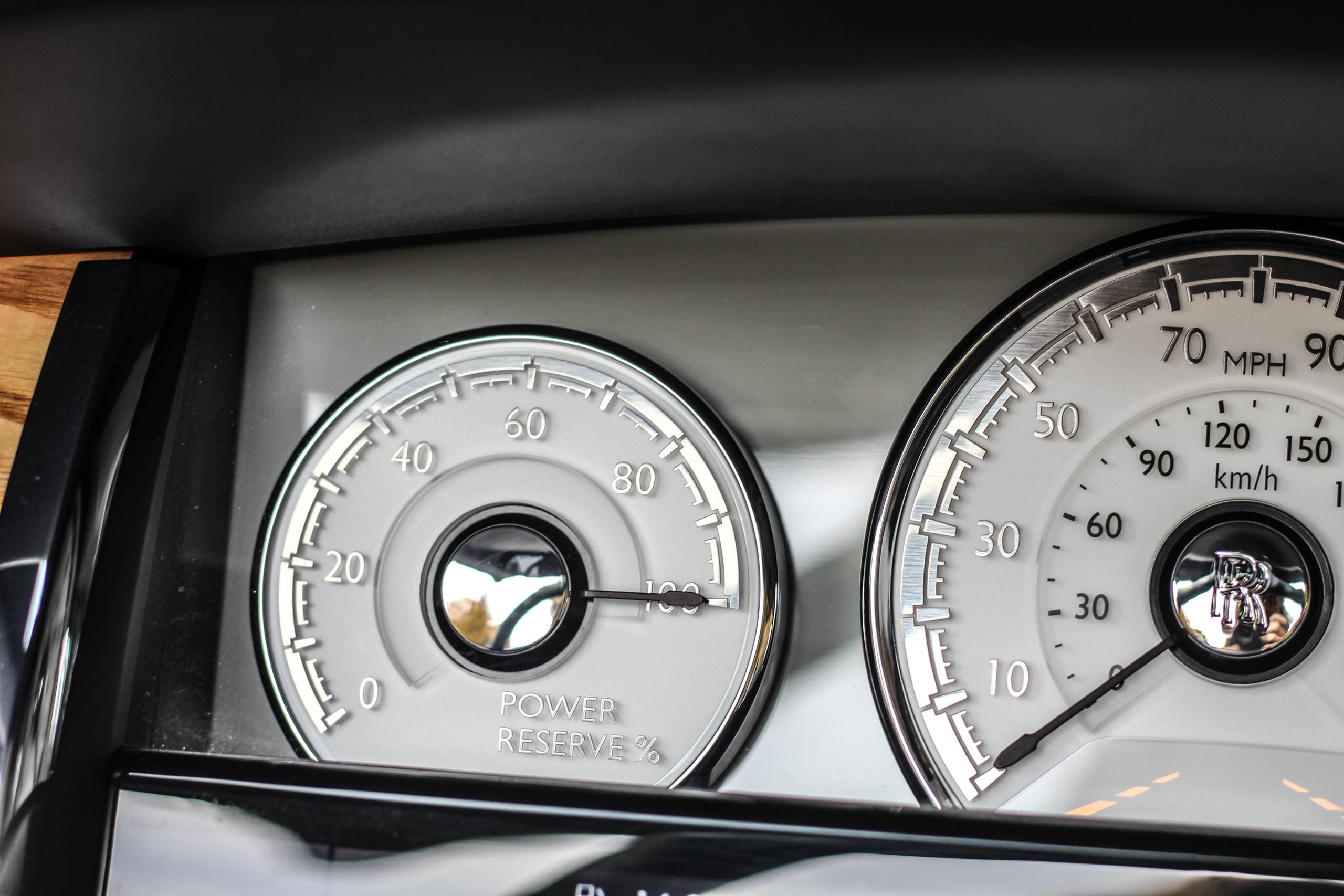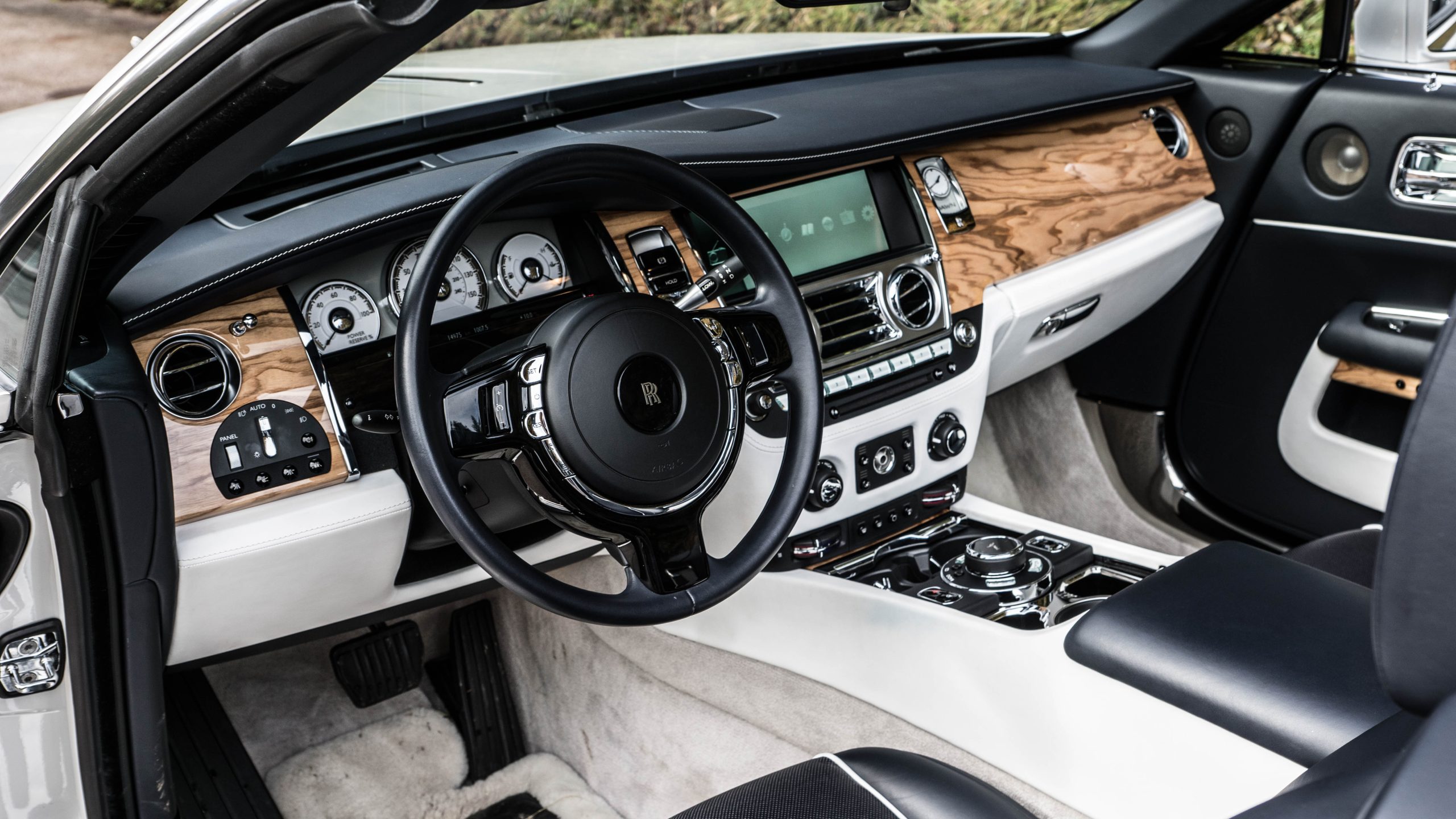 I Rollsen är det många bäckar små som gäller. Det är dock när man fattar grepp om ratten – som är lika smal som en segelbåtsratt men minst lika stor – som upplevelsen verkligen tar fart. Med ett knapptryck hör man hur startmotorn väcker V12:an till liv. När man sätter den rattstångsmonterade växelväljaren till ”D” är bilen redo för att ge dig din livs åktur. Man kör inte en Rolls-Royce, man upplever den.
