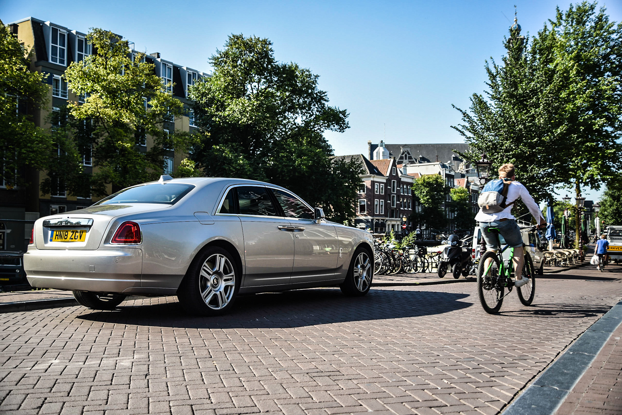 Att köra runt i Amsterdam med en Rolls-Royce Ghost känns lite som att dyka upp på Greenpeaces årsmöte med en helikopter. Alla som cyklade – vilket i Amsterdam sannerligen är alla – tyckte bara att man ständigt var i vägen. Jag fick fler arga blickar och otrevliga handgester än Brett Kavanaugh. De som dock uppskattade bilen var faktiskt folk i min egen ålder. Passade då Ghost in i Amsterdam? Kruxet är att alla gränder är minimala och att Rollsen är maximal – det krävdes att jag höll andan hela vistelsen för att säkerställa att bilen skulle komma fram överallt.