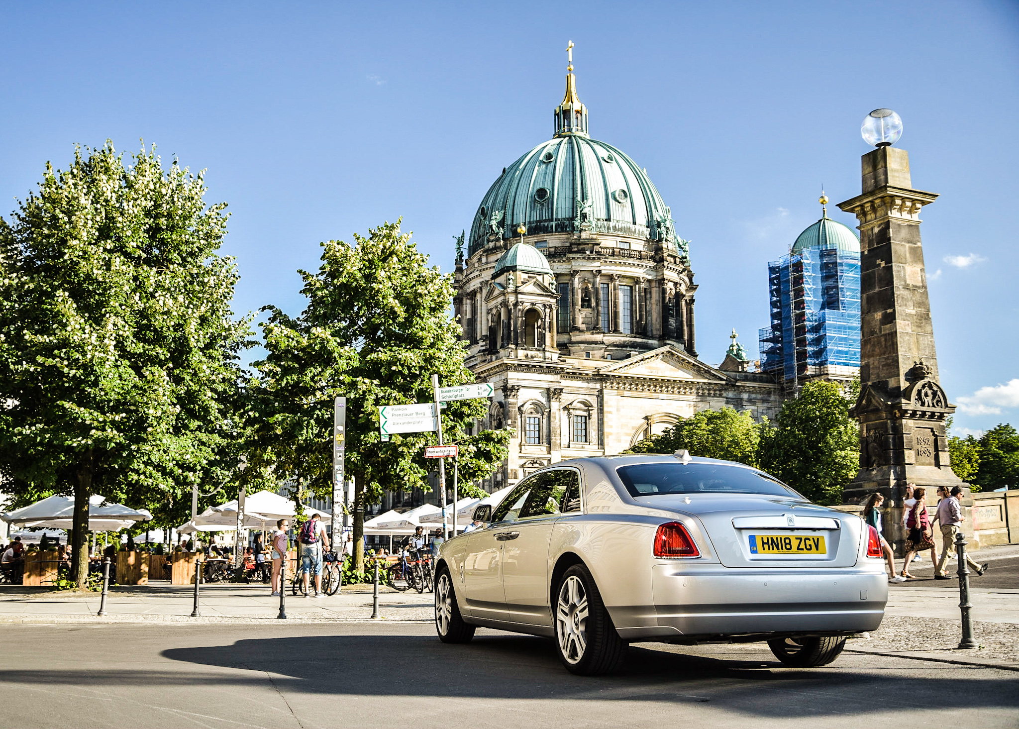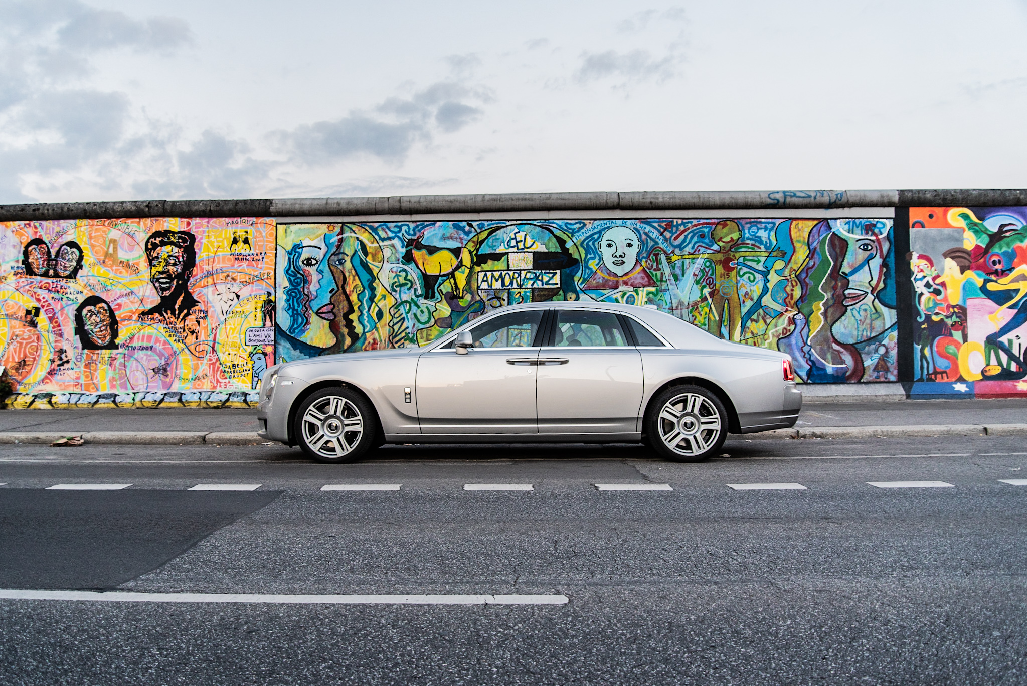 ”Är du full?” undrade polismannen. Klockan hade slagit fyra på morgonen och jag befann mig vid Berlinmuren, mittemot fashionabla Kreuzberg. Bara en kvart tidigare hade jag varit i just Kreuzberg och fotat, omringad av berusade bohemer på väg hem från krogen. En polisbil hade rullat förbi med skrattande konstaplar och en taxichaufför frågade om jag behövde hjälp. Jag kände mig inte otrygg men ungefär lika hemmahörande som kungen på ett charterflyg. I sökaren såg jag den bil jag hade ansvar för, en Rolls-Royce Ghost som kostade strax över fyra miljoner kronor.