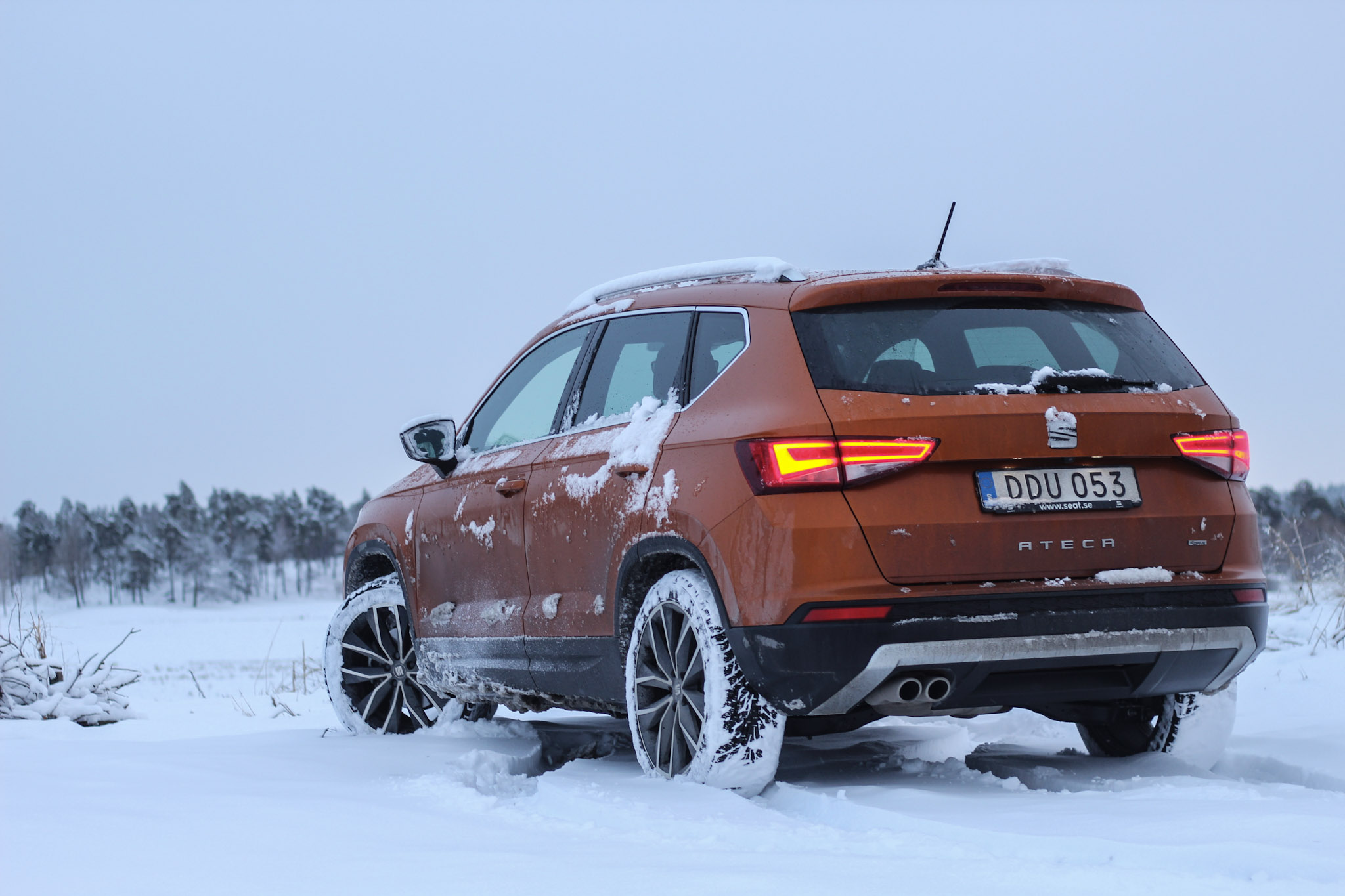 Tiguan däremot skulle vara den som sitter tyst och tuggandes på en brödbit snällt väntar medan föräldrarna irrar runt och försöker få tag i syskonet. De distinkta varselljusen gör att Ateca blir riktigt snygg framifrån. Den har inte samma svepande grill som Tiguan har, men de aningen vassare kanterna bidrar till en aggressivare utstrålning. Bilens bakdel ser dock aningen förvrängd ut. Tiguanens baklyktor är stilrena och smälter in med bilen som en person iförd kavaj i EU-parlamentet. Ateca:s baklyktor ser ut som den där personen som är lite för sjuk för att vara på jobbet, den som har satt på sig skorna på fel fot och vänt tröjan bak och fram. Man märker att det är något som inte riktigt stämmer.
