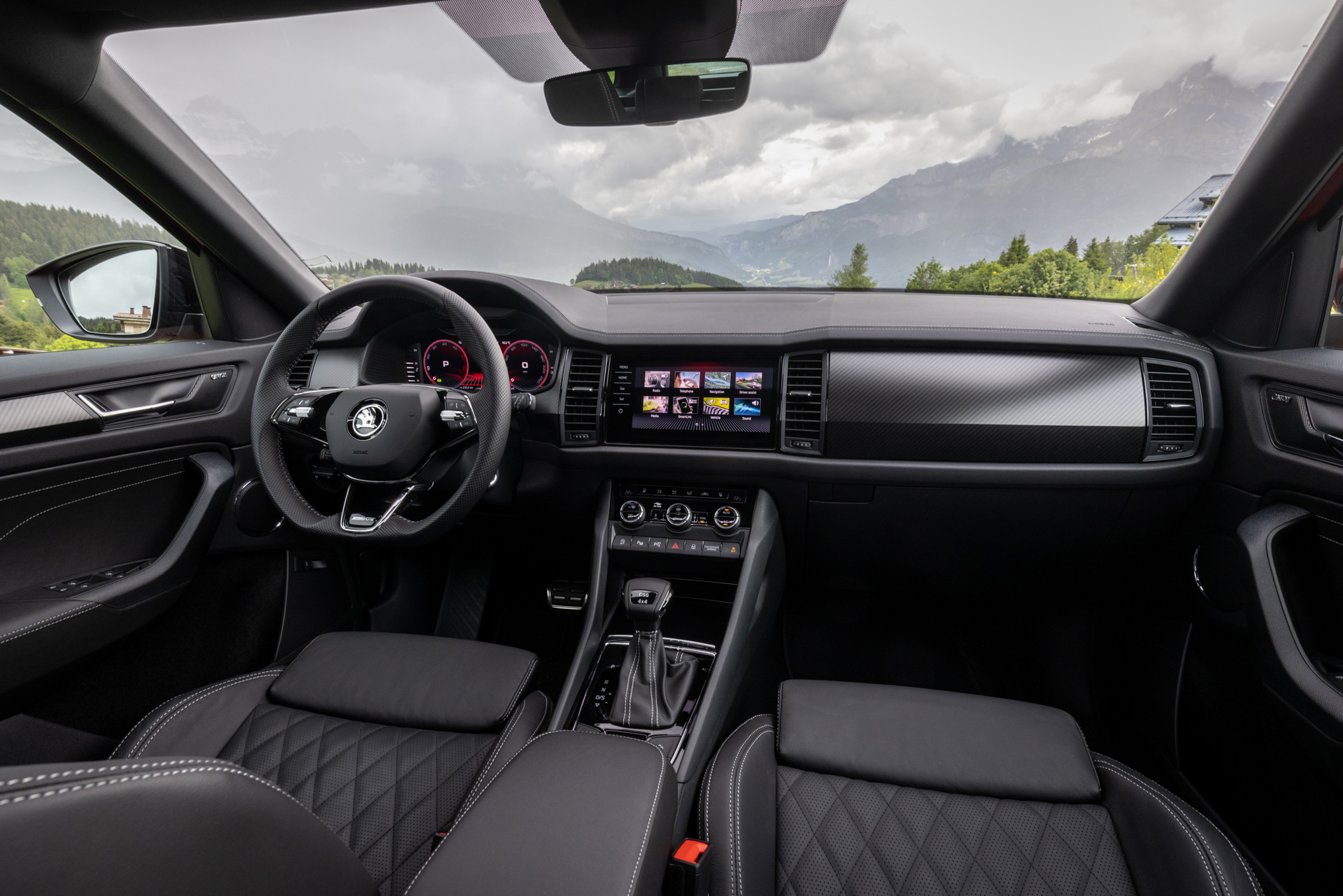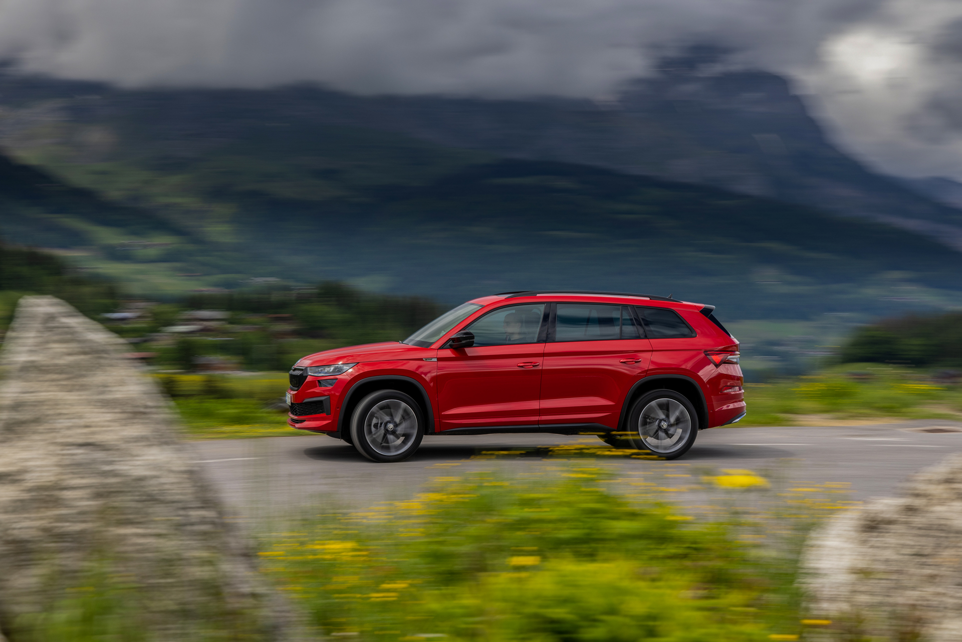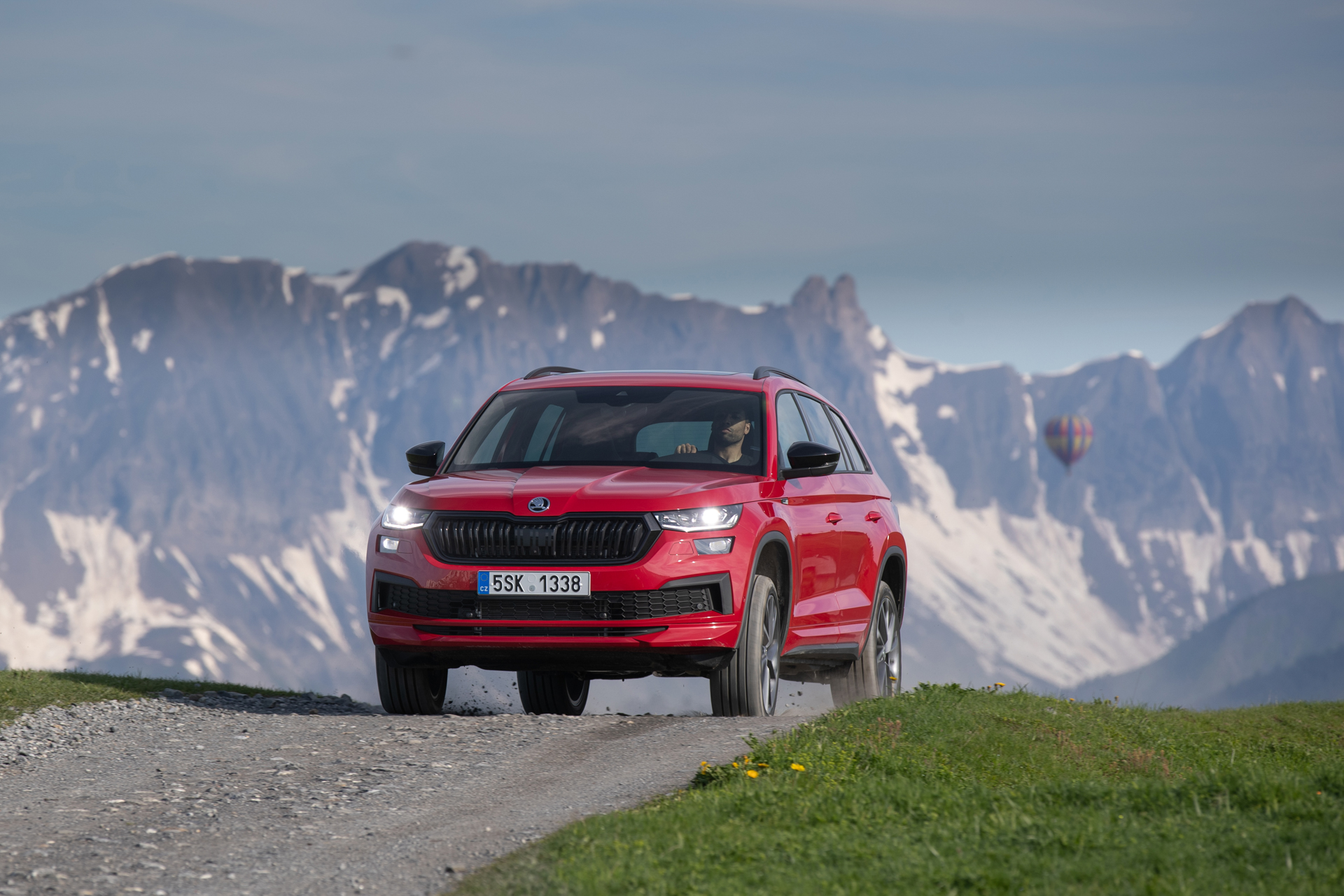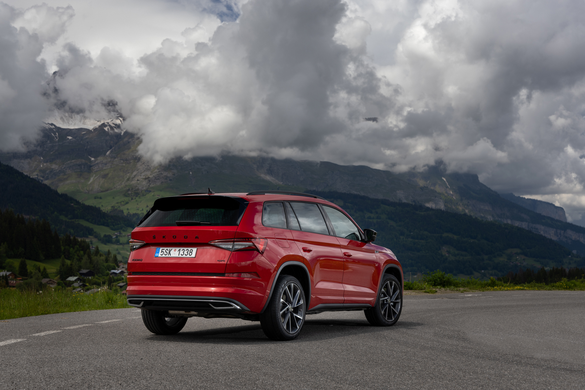 I Sverige kommer Škoda Kodiaq att erbjudas med tre drivlinor – där alla har fyrhjulsdrift – och tre utrustningspaket. Dessvärre får vi varken den sportiga RS-modellen eller lyxvarianten L&K. I stället har Škoda fokuserat på att fokusera på sin mer miljöpartistiska profil i samband med lanseringen av Enyaq. Bland annat rattade jag den förväntade storsäljaren – 190-hästars bensinaren i Sportline-utförande. Motorn går tyst och jämnt och även om plattan i mattan knappast leder till några stordåd duger den gott och väl till att köra om slöfockar i Alperna. Även i högre hastigheter på motorvägen lyckas den kännas stabil men det är sannerligen ordet ”lagom” som beskriver dess köregenskaper bäst.