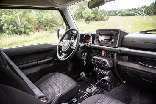 Nya Jimny ser ut ungefär som de bilar undertecknad ritade när han var fyra å’t halvt år gammal, en mindre låda där fram och en större och högre låda där bak, och så ett hjul i varje hörn. Jimny är definitionen av charmigt enkel design som inte låtsas vara något som den inte är. Testbilen var dessutom utrustad enligt ’less is more’-synsättet vilket innebär halogen-lampor och en hyrbilslik avsaknad av navkapslar. Estetiskt tilltalande? Inte direkt, men så himla rätt på en bruksig terrängbil!