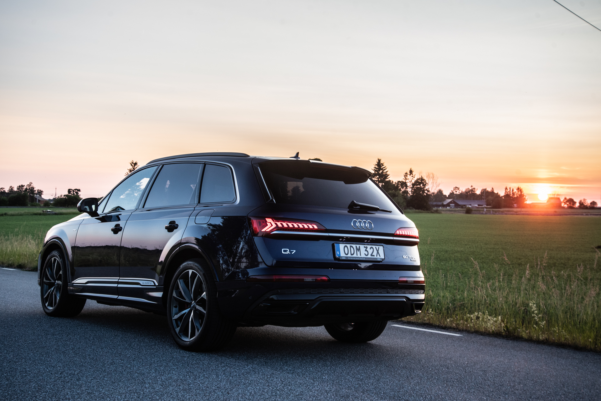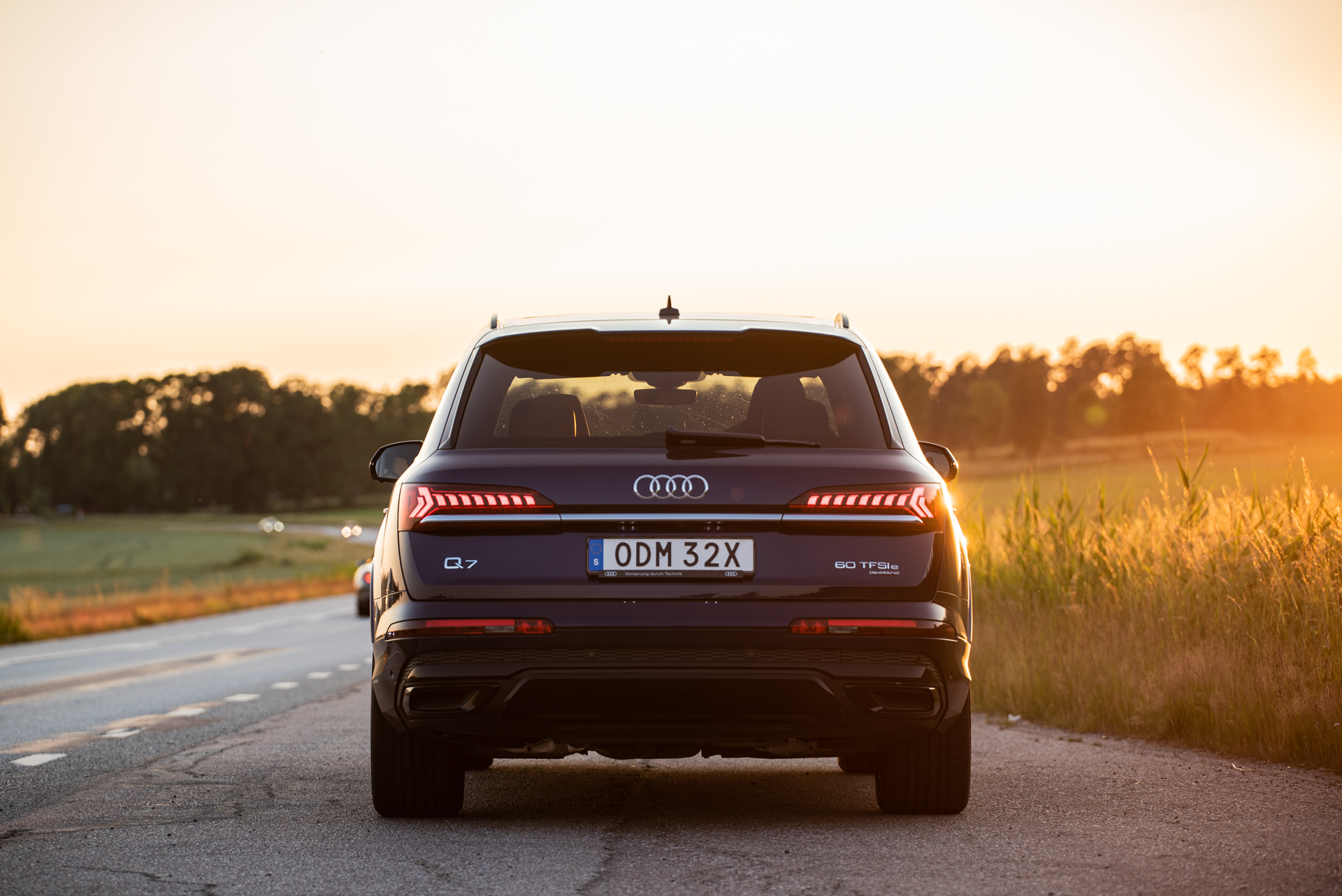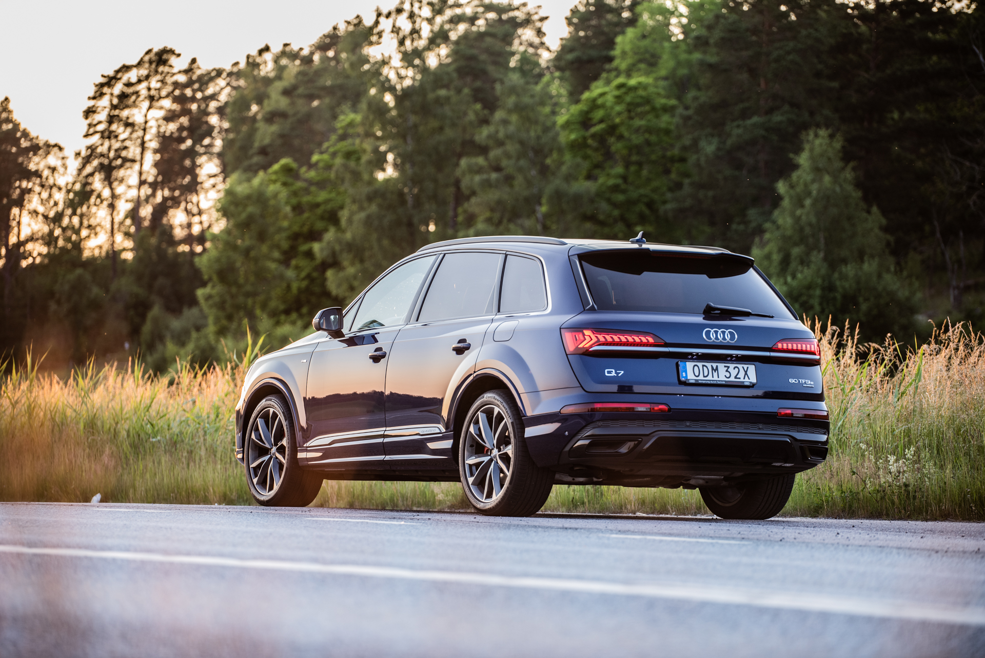 Nya Audi Q7 e-tron har ersatt dieselpjäsen med en bensinmotor. I kombination med att bilen strikt erbjuds i S-line-utförande är det just prestandan som Audi vill framhäva. Den är snäppet ”hetare” än föregångaren men beträffande just eldrift kommer man cirka tre mil på ren el, inte klassledande men heller inte uselt. Den förblir bekväm, rymlig, och lyxig och nya Q7 är en av märkets bästa bilar.