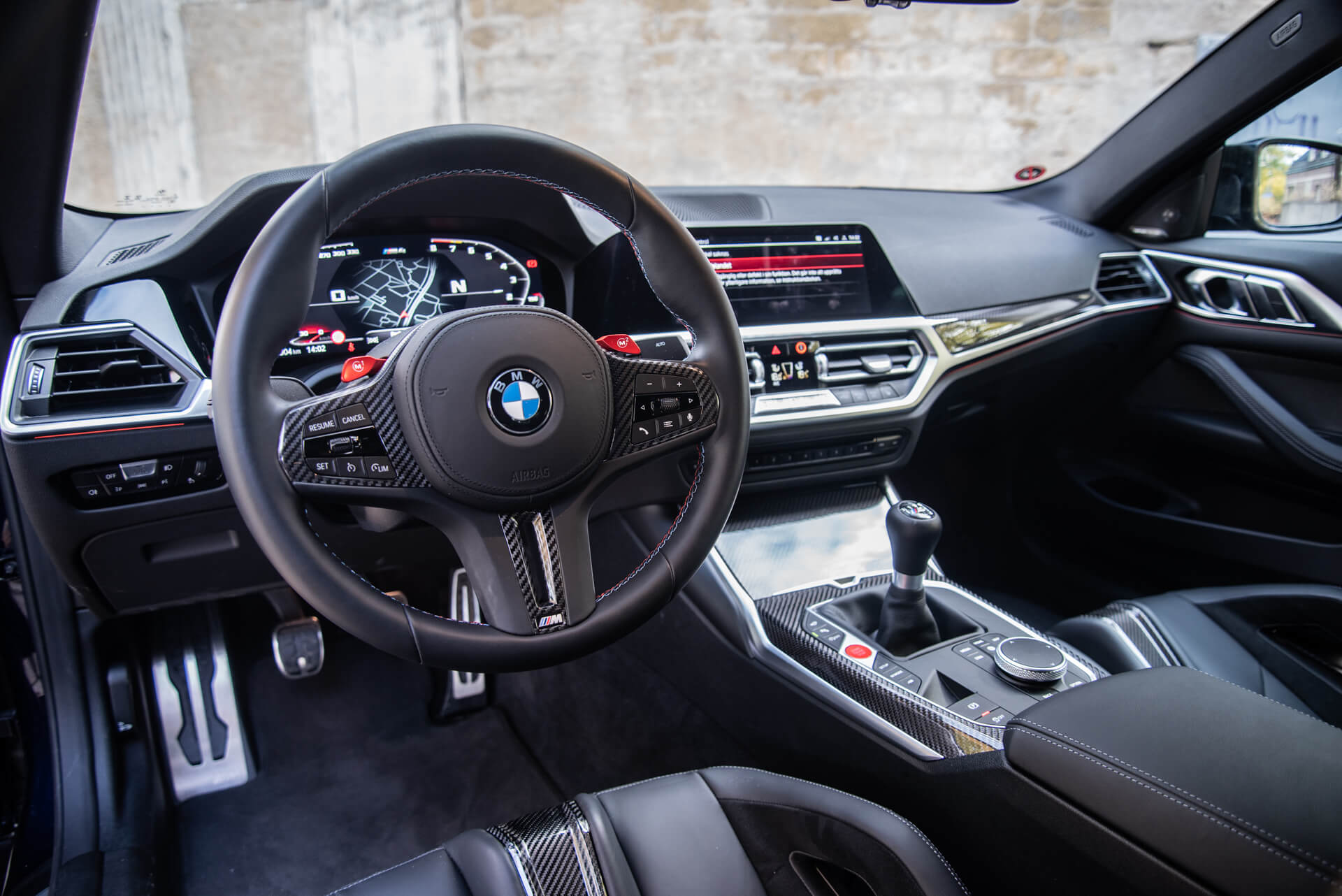 Man skulle kunna tro att just själva växellådan är den enda nämnvärda skillnaden mellan en manuell M4 och en automatväxlad dito, men så är inte fallet. Väljer man det sexpetade alternativet går man nämligen också miste om Competition-paketet, vilket utöver några smärre stylingdetaljer egentligen bara betyder att motorn är nedtrimmad en smula. Effekten ligger på 480 istället för 510 hästar och vridmomentet ligger på 550 istället för 650 newtonmeter. Den manuella lådan går inte heller att kombinera med det avancerade fyrhjulsdriftsytemet M xDrive.