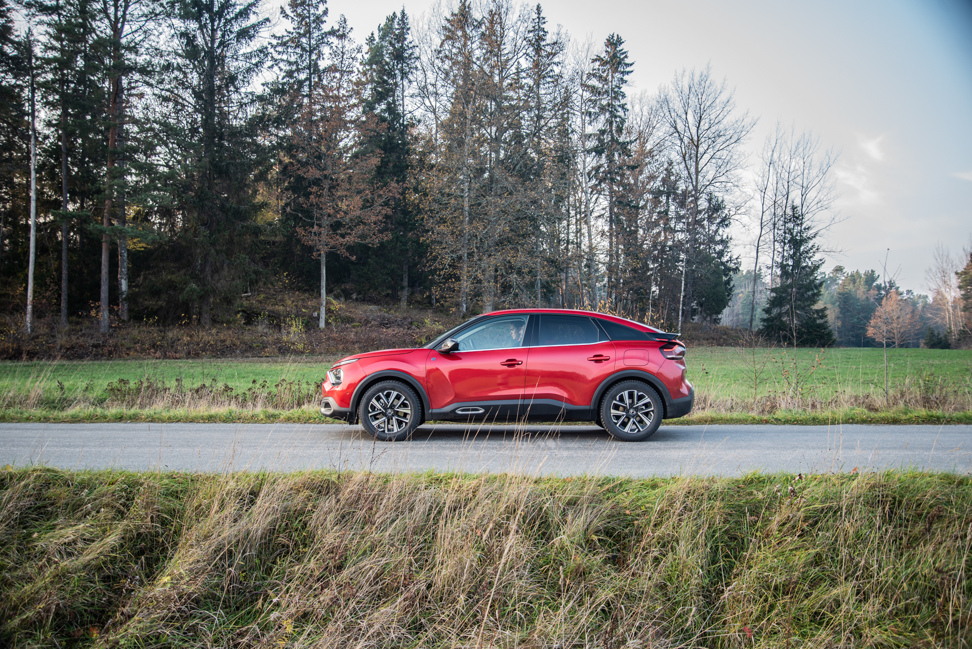 Elbilen för massornas tid är nu här med besked. För några år sedan var de elbilar som fanns på marknaden få och ofta dyra, men nu finns de i ett allt bredare urval av karossformer till allt rimligare priser. Citroëns senaste bidrag till denna breda skara är ë-C4, och med en leasingkostnad på bara knappt tre tusen kronor per månad och en räckvidd på drygt 35 mil förefaller den vara ett värdigt tillskott på marknaden. Låt oss lägga i Högsta Växeln och undersöka om så är fallet.