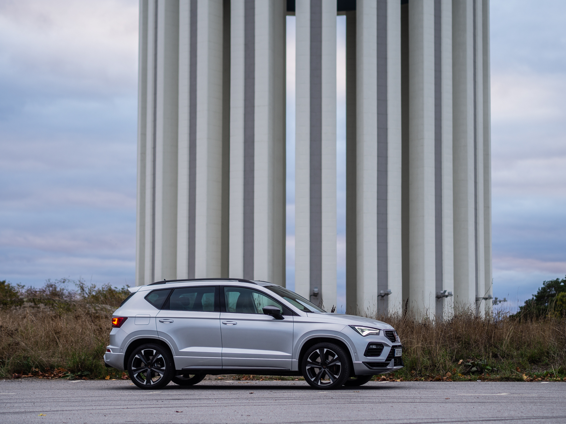 Ateca är med sina 300 hästkrafter, fyrhjulsdrift och en snabbt arbetande dubbelkopplingslåda ett riktigt krutpaket, något som återspeglas i det faktum att bilen gör 0-100 km/h på under 5 sekunder. Tursamt är väl då att hjulen kan utsmyckas med ett gäng rejäla Brembo-bromsar i storlek XL som illa kvickt sätter stopp för vansinnesfärden. Ja, det är sannerligen uppenbart att vi begåvats med någonting utöver en vanlig familjekärra. Det görs om inte annat tydligt genom bilens avgasrör i fyrtal. I övrigt är designen för det mesta lik dess mer nedtonade systermodell.