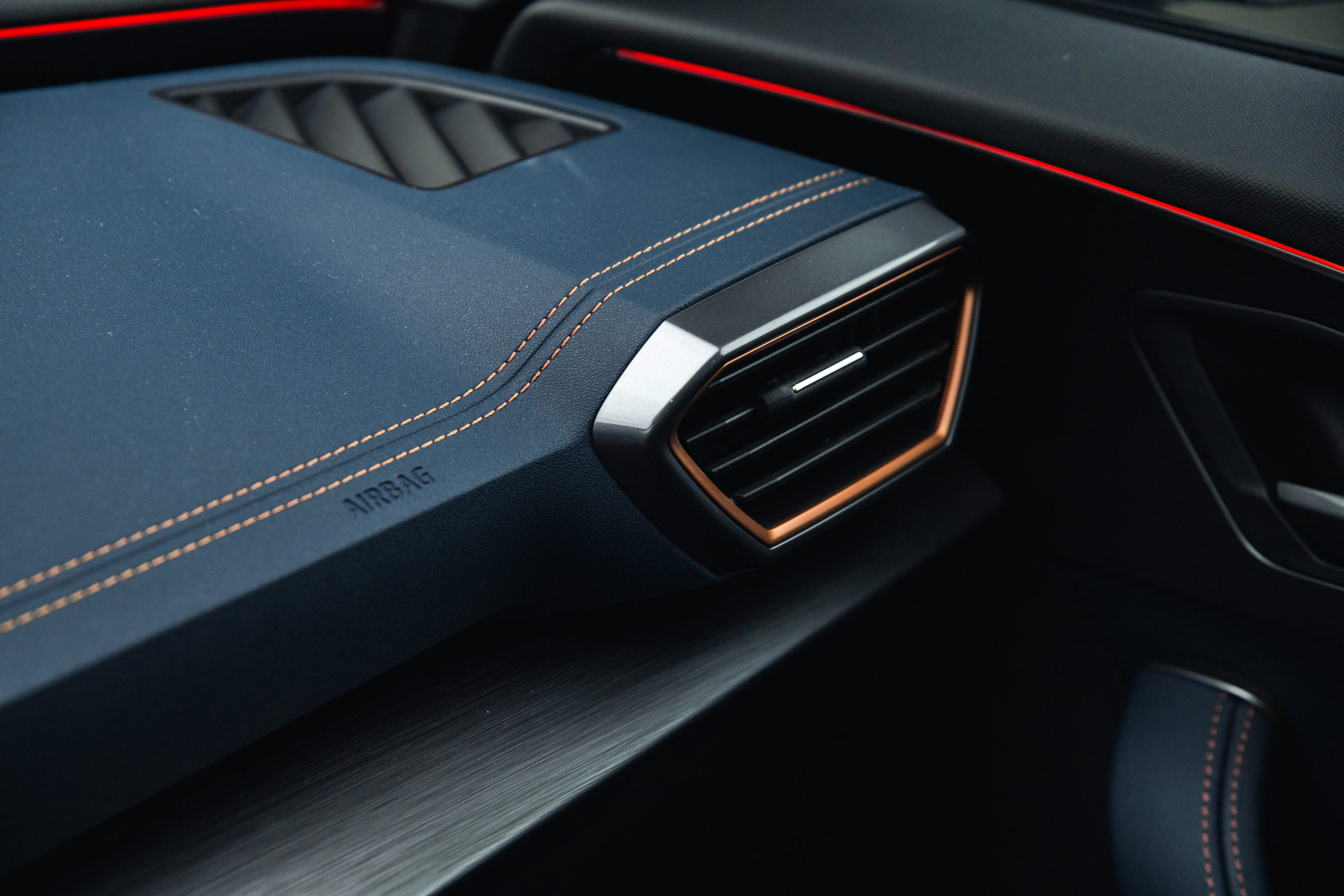 Bakom ratten är det inte längre lika Cupra-specifikt utan mycket känns igen från syskonen inom Volkswagen-koncernen. Testbilen var utrustad med säten i petroleum-blått skinn och den överlag mörka interiören lyfts av subtila bronsfärgade detaljer. Bronsfärgen är ett återkommande inslag hos alla Cupra-modeller och personligen tycker jag att det finns färger som gör sig bättre i en bilinteriör men det är kul att sticka ut när mycket inom branschen ser likadant ut. Utrymmena är väl tilltagna och helt i linje med vad man förväntar sig. Bilen fungerar ypperligt för den mindre familjen i behov av rejäla fartresurser.