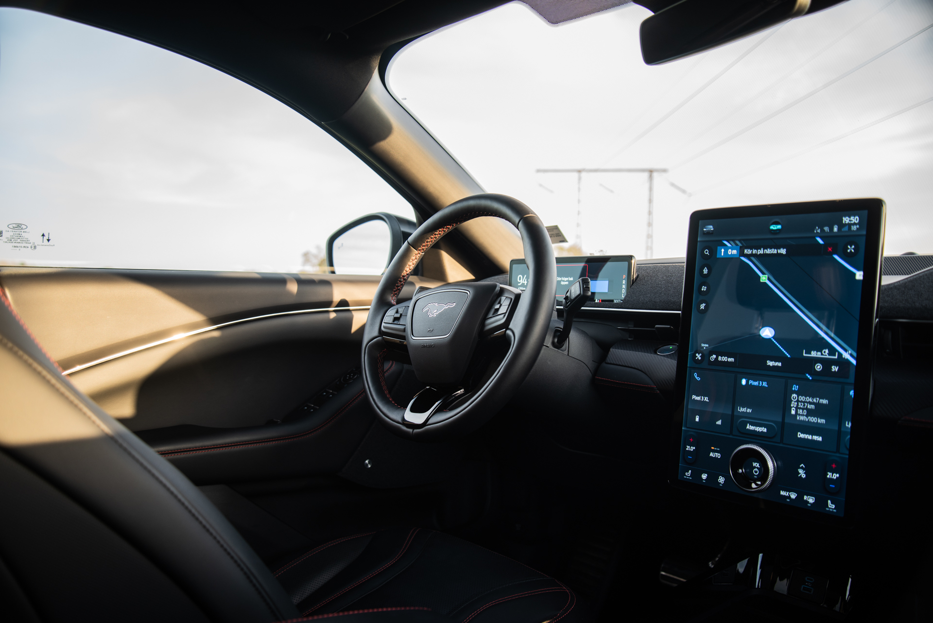 Infotainmentsystemet är det nya Sync 4, som introduceras i och med den här modellen. Precis som prislappen är den enorma skärmen en påminnelse om att det är Teslas kunder man har siktet inställt på. Skillnaden är att Teslas infotainmentsystem är intuitivt medan Fords är motsatsen.