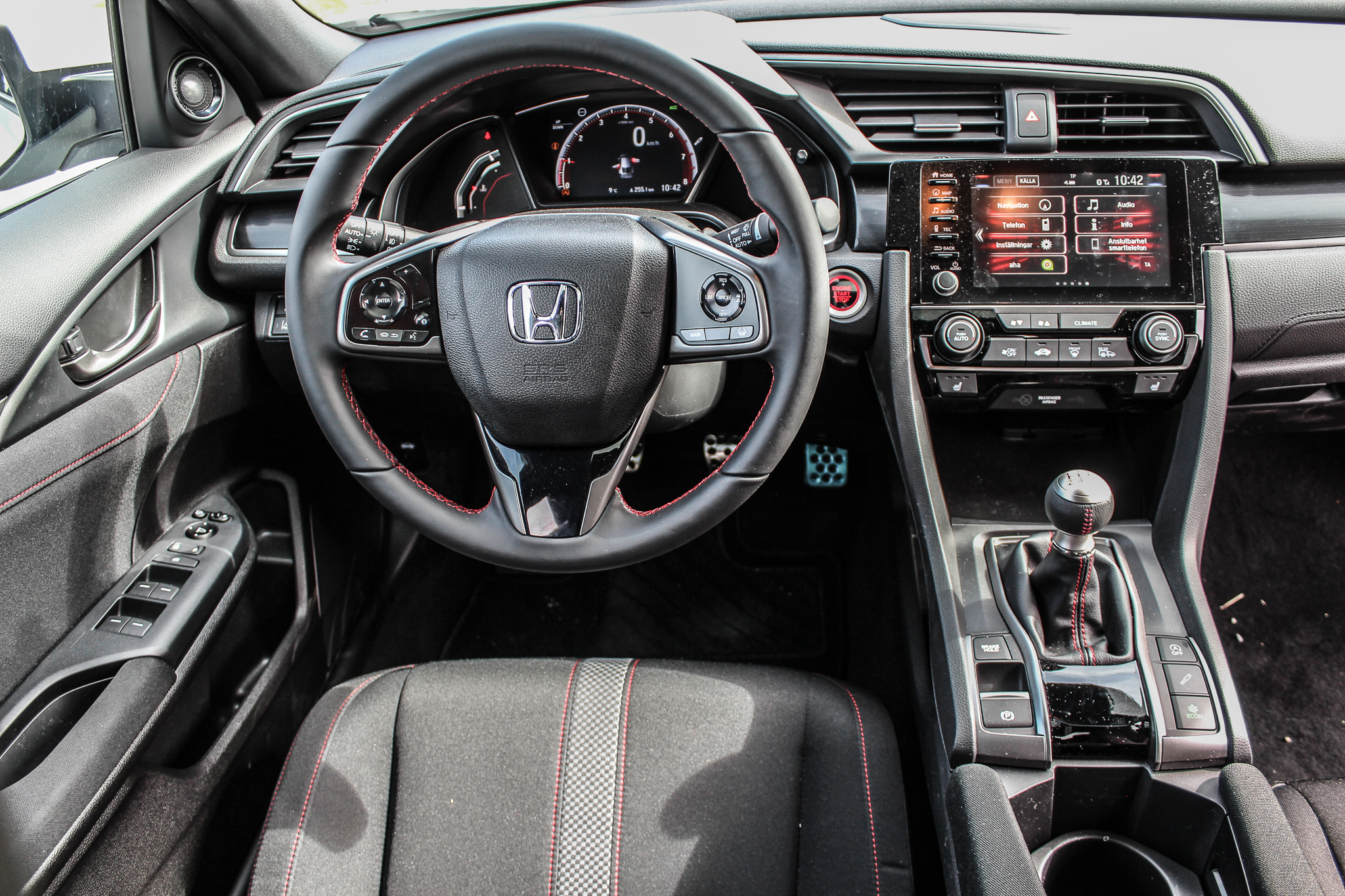 Interiörkänslan är som exteriören blandad. Honda har fortfarande kvar ett infotainmentsystem som ser ut att höra hemma i The Fast and the Furious: Tokyo Drift. Det är relativt gammalt och det syns. Många knappar är fysiska vilket är bra, men på vissa ställen är de så många att det blir rörigt. Sikten ut är god förutom bakåt där vingen delar bakrutan så att det enda som syns är färgen på himlen och den grå asfalten. Inte det man faktiskt vill se, nämligen vad som händer bakom en. Ett stort plus är stolarna som är bekväma samtidigt som de ger bra sidostöd.