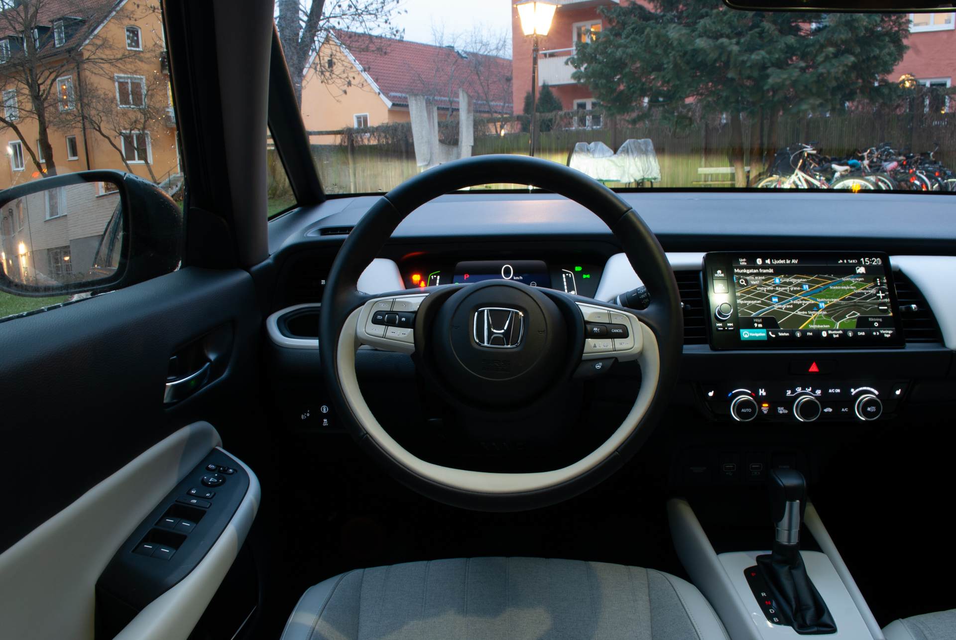 Komfortmässigt är det inget större fel på bilen. Kvalitetskänslan i inredningen reflekterar prislappen, på så sätt att den tillhör en helt annan liga än Toyota Yaris. Höjdpunkten sett till reglage är ratten. Den känns igen från Honda E, men knapparna den har begåvats med består av någon sorts ljust beige, emaljaktig hårdplast, som inger en alldeles lagom stark retrokänsla och kompletterar bilens lite udda exteriör väl.