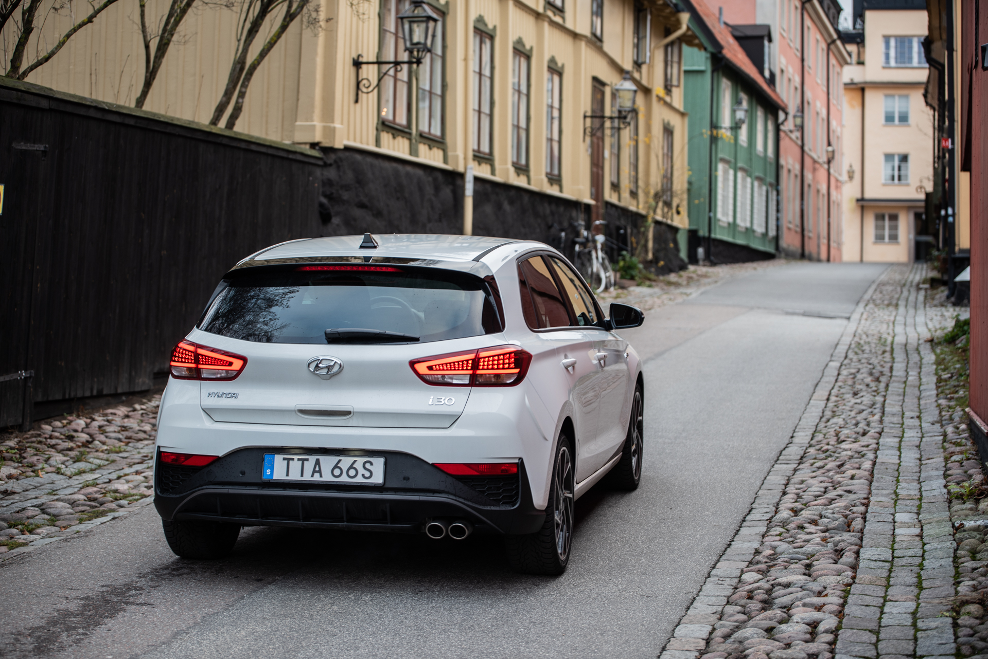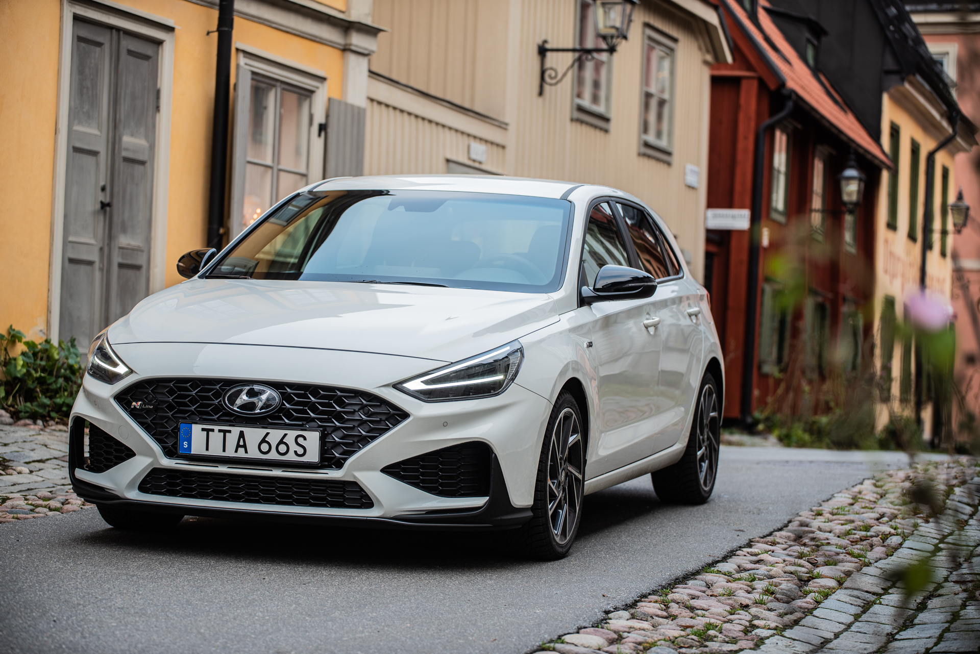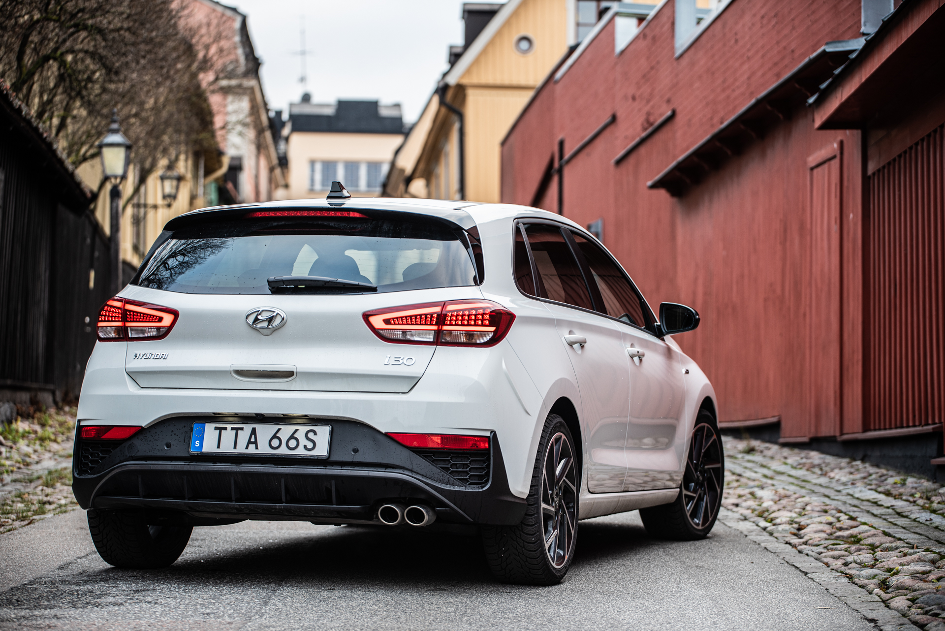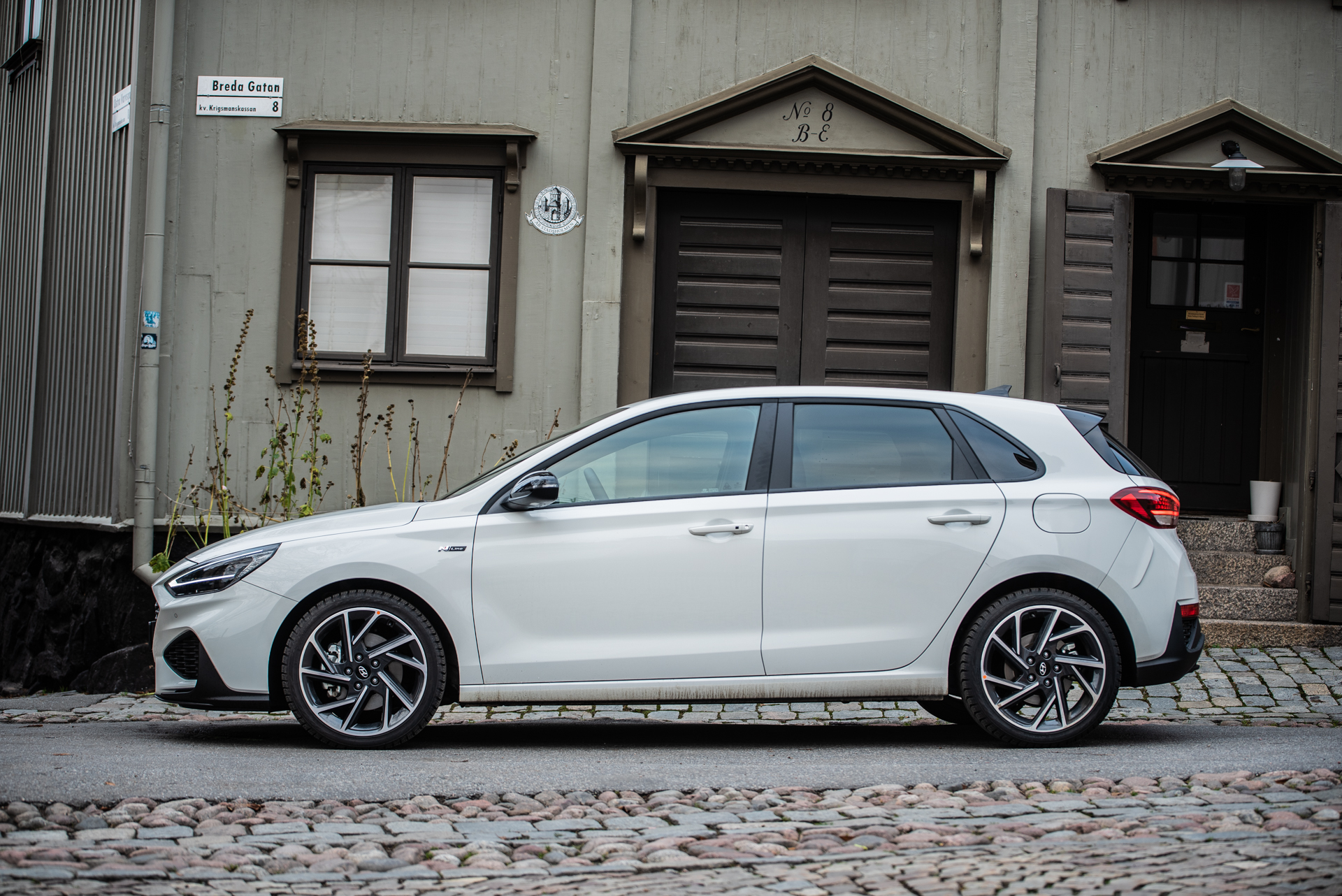 Första gången vi la vantarna på nya i30 var i Spanien för ganska exakt fyra år sedan. Vi imponerades av dess kompetens men tyckte att den var lite karaktärslös. Senare samma år åkte min kära kollega Joel på en Europa-roadtrip med nya i30 kombi. Slutsatsen var densamma – kompetent men karaktärslös. Och prisvärd. Uppdaterade Hyundai i30 stoltserar med uppdaterad design och tillägget av mildhybriddrivlinor. I vår testbils fall var den en i30 försedd med N-Line-paket, ett kosmetiskt exteriörpaket som får bilen att se ut som en pojkracer. Under huven fann man emellertid en mildhybrid på 160 koreanska kusar.