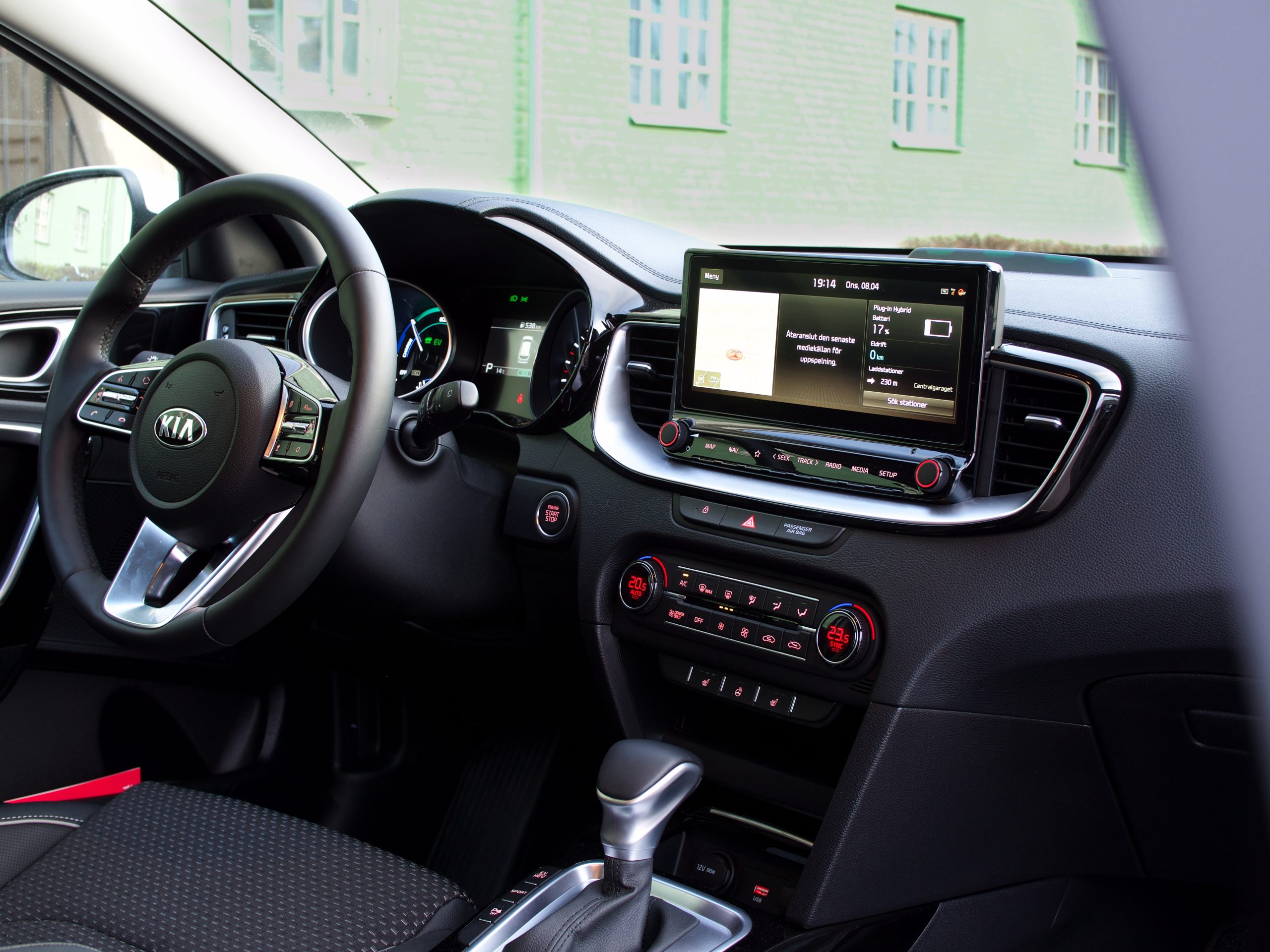 I kontrast mot bilens exteriöra design, imponeras jag av interiören. Kupén känns välbyggd med mängder av soft touch-material – något som inte alltid är att vänta av en bil i den lägre prisklassen – samtidigt som infotainmentsystemet är lättarbetat. Testbilen sakande förvisso lyx såsom läderklädda stolar, men den var långt ifrån dåligt utrustad. Ceed SW PHEV standardutrustas med en mängd säkerhetssystem, såsom adaptiv farthållare, filhållningsassistans och autobromssystem, samtidigt som testbilen var bestyckad med eluppvärmbar läderratt och Apple CarPlay.