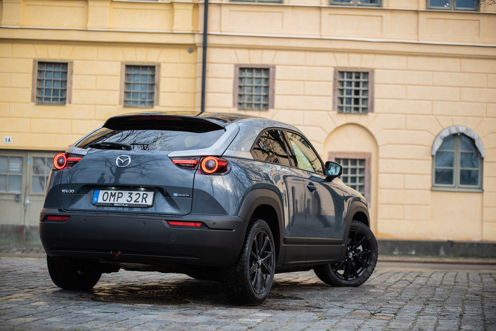 Namnet MX-30 för tankarna till Mazdas ruskigt underhållande glädjepiller MX-5 men bilarna har alltså inte mycket gemensamt utöver vem som tillverkar dem. MX-30 är framhjulsdriven, helt eldriven och byggd för att vara rimligt praktisk i en genomsnittlig svensks vardag. Samtidigt är det tydligt att Mazda har designat MX-30 som en andra-bil, främst på grund av den klandervärda räckvidden, men vi kommer till det lite senare.