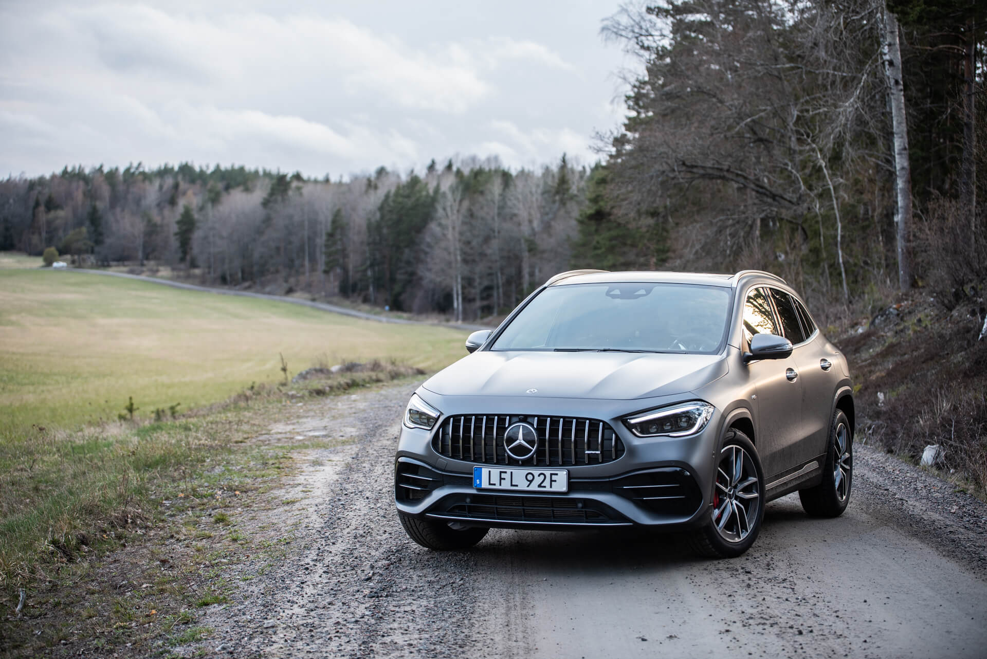 När motorn är uppe i varv och får möjlighet att brassa på med sin rent ut sagt sjuka mängd kraft går det utav bara helvete. SUV-karossen är på så vis paradoxal men med det sagt är GLA 45 S uppträdande på landsväg oerhört imponerande. Den greppar som superlim i hårbotten och man räds inte för att trycka på, den märkliga körpositionen till trots.