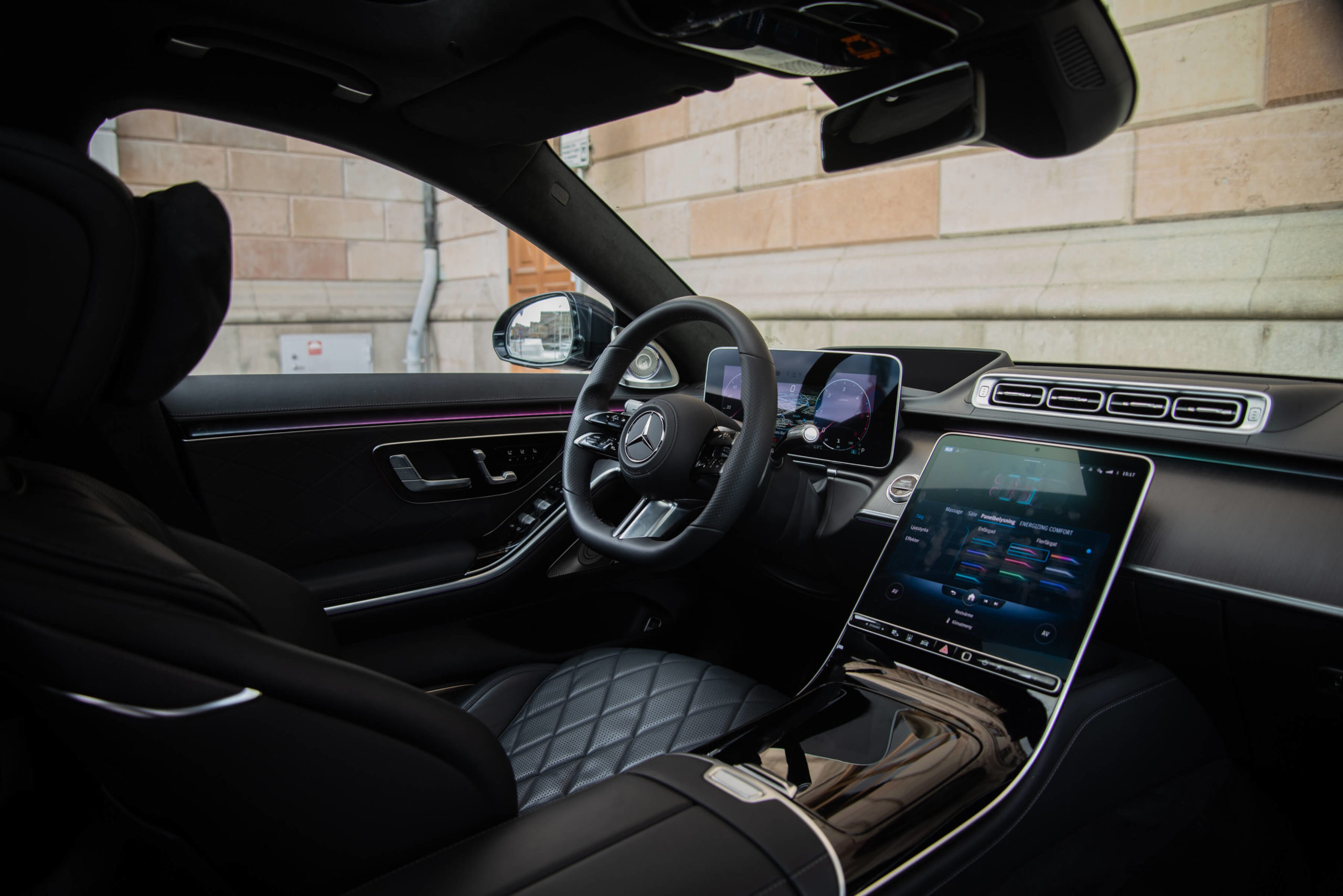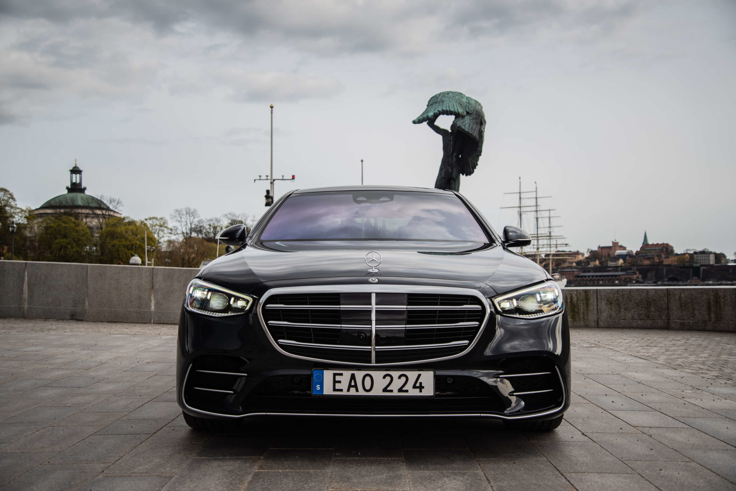I testbilens långa utförande blir S-klass 11 centimeter längre än ordinarie S-klass – vilket gör den till en baksätesbil; man sitter hellre bak än fram. Lyckligtvis hade den det jag skulle kalla för marknadens bästa fyrhjulstyrningssystem och hade därför inga som helst problem med att navigera sig genom Gamla stans gränder. Systemet gör bilen flinkare i stan medan den ökar stabiliteten vid höghastighetskörning.