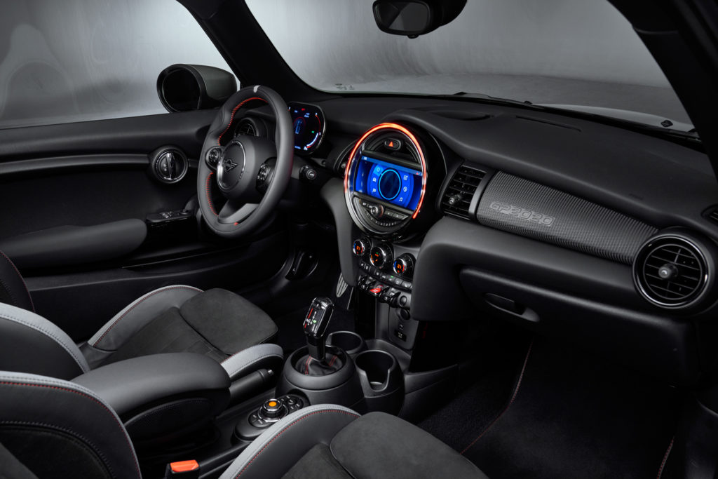 Utseendemässigt ser nya JCW GP ut som en pojkracer som tagits direkt från ritbordet till produktion med fokus på att passa in på valfri bilträff med streetracingtema för att inte tala om att få allt och alla att vilja tävla med en. Exteriören är en kombination av form och funktion – den enorma spoilern, luftintagen och de utmärkande hjulhusen är alla till för att JCW GP ska vara så snabb det bara går runt en bana.