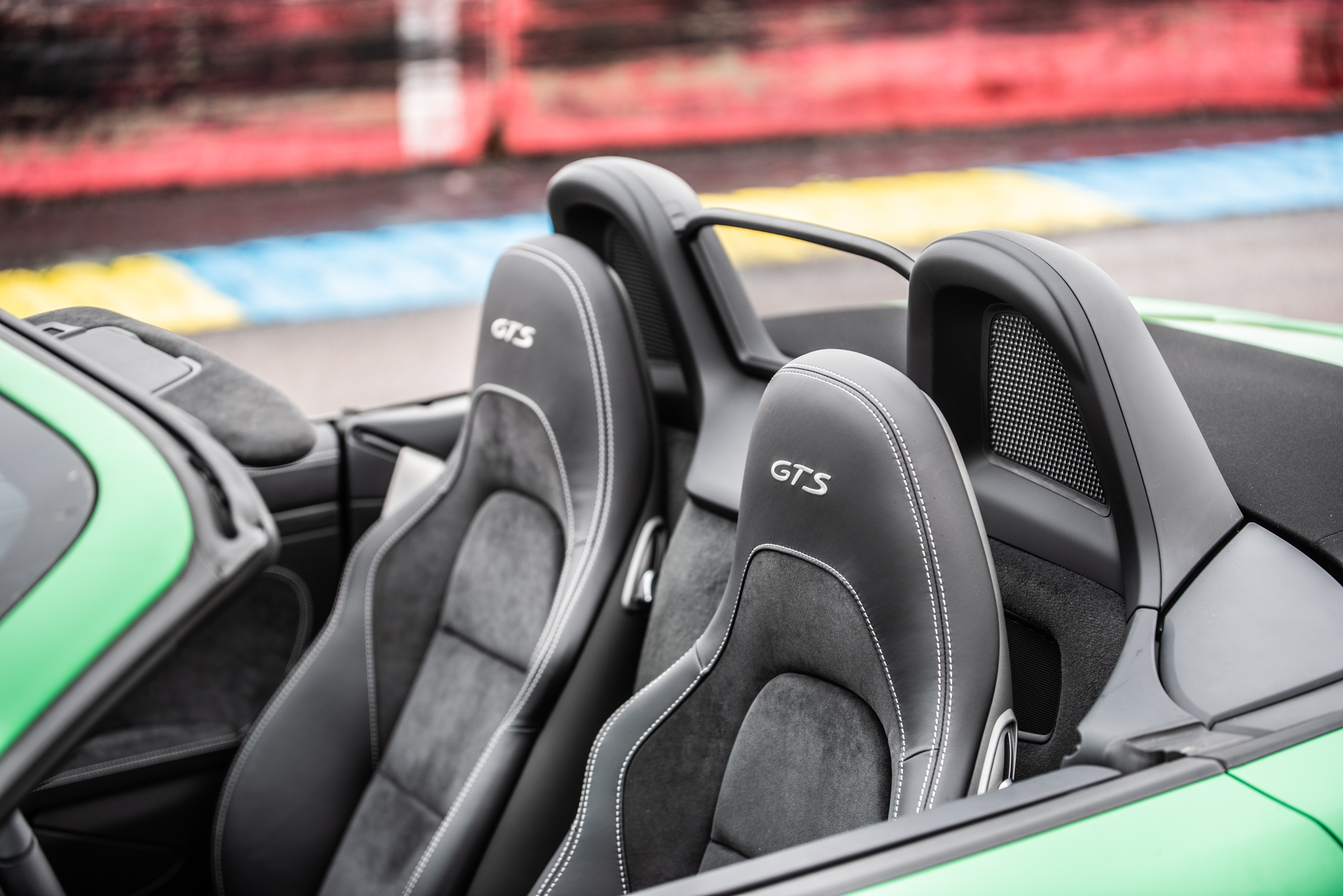 Vid första anblick blir det uppenbart vad 718 Boxster är för något: en sportbil av det klassiska slaget – en bakhjulsdriven cabriolet med sugmotor och en sexväxlad manuell låda. Resultatet är en bil som inte längre är till för frisörer som bor i Kalifornien utan en bil för de som skulle ha med ”bilkörning” som hobby på en dejtingsida. I GTS-utförande ser 718 Boxster aggressivare ut än ordinarie 718 Boxster, något den pytongröna färg vår testbil var bestyckad med accentuerade ytterligare. Första generationen Boxster såg ut som en mupp – åtminstone framifrån – men den nya ser bra ut från alla håll och kanter. Porsche är skickliga när det kommer till att designa bilar av det mer ikoniska slaget.