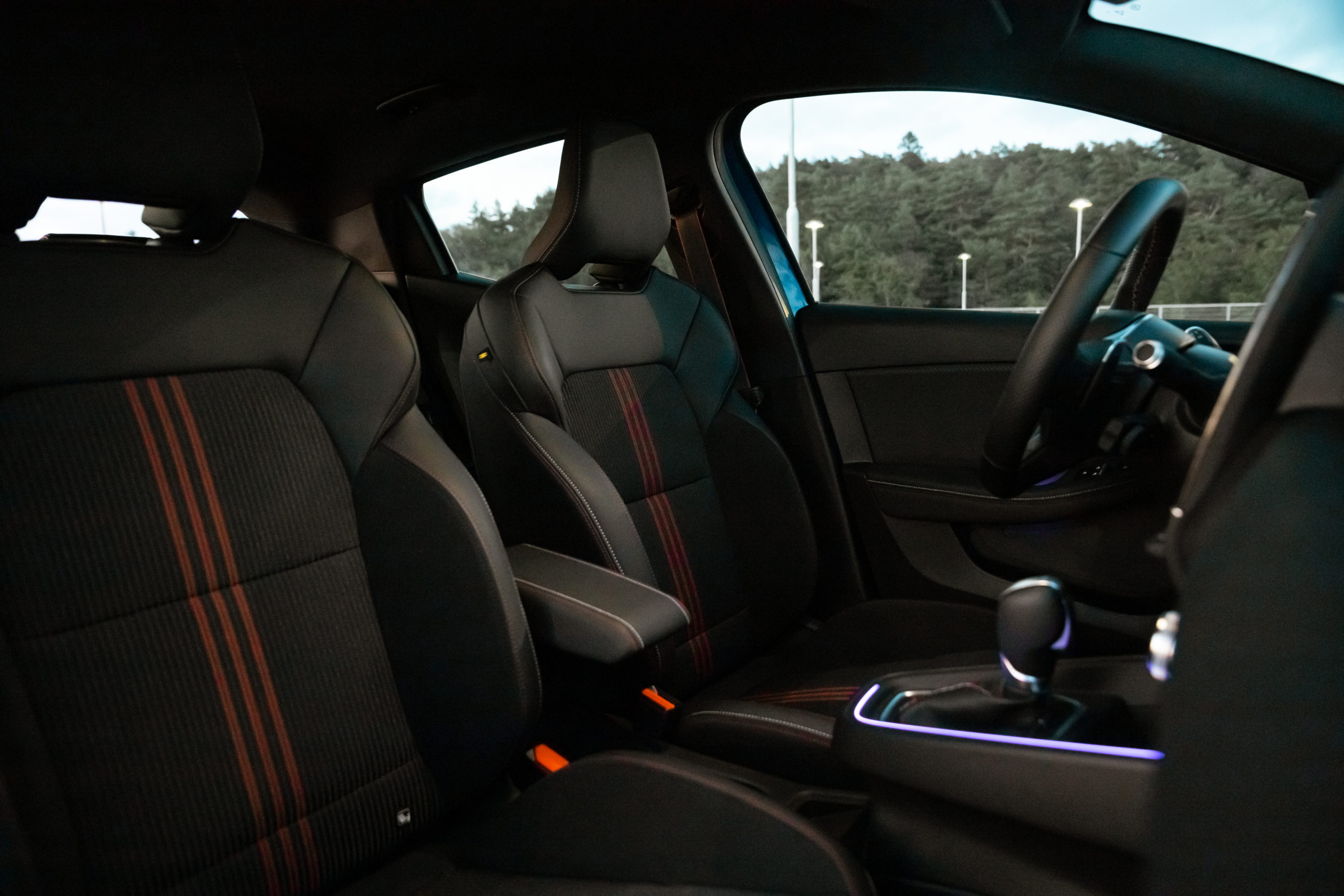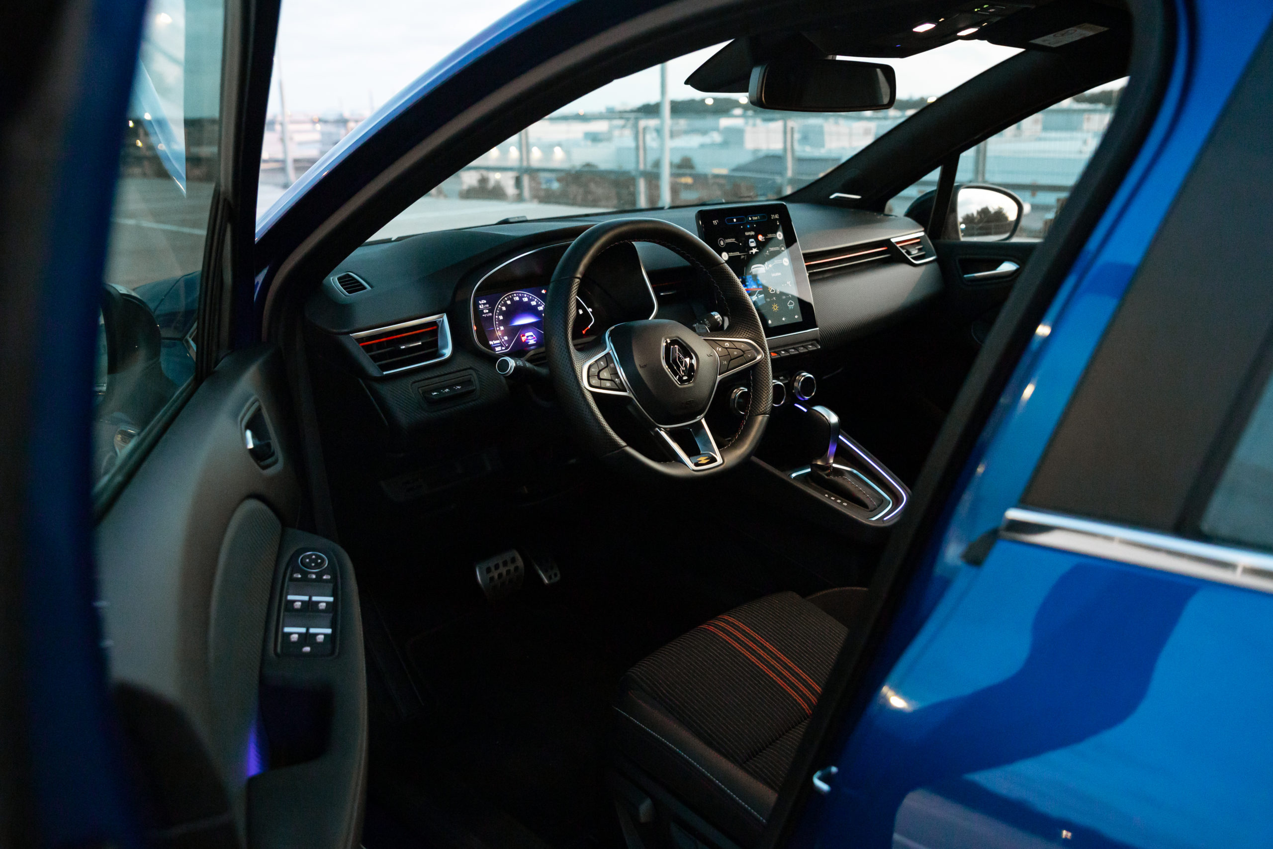 När man sedan kliver in och tar plats bakom ratten är RS-temat fortsatt påtagligt med specialstolar och en greppvänlig RS-ratt. Även säkerhetsbältena har fått en racingröd rand för att ytterligare understryka att det här inte är en vanlig Clio. Utöver de RS-specifika detaljerna är interiören väldigt lik de övriga Renault-modellerna med en stor touchskärm och och separata vred för luftkonditionering. Det gör att man inte behöver ta ögonen från vägen mer än nödvändigt. Dock är infotainmentsystemet varken det snabbaste eller det med bäst gränssnitt men får för prisklassen ändå anses som okej.