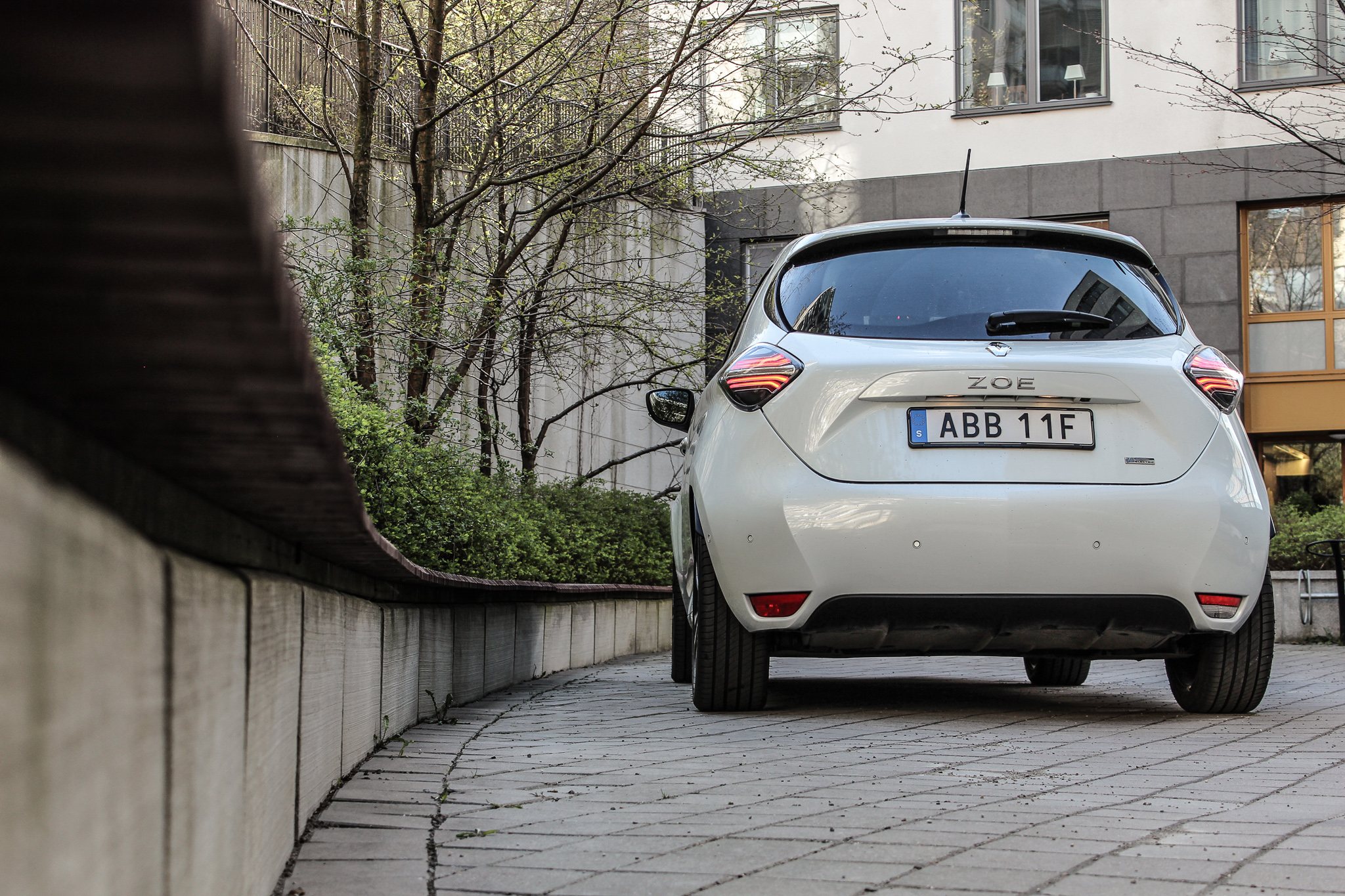 Det första man märker när man sätter sig bakom ratten är den höga sittpositionen. Det beror på att batterierna är placerade längst ner i bilen. Det gör inte helt oväntat att Zoe är relativt stabil på motorvägen såväl som på lite kurvigare landsvägar. Den inger absolut inte känslan av att vara en sportbil på något sätt och vis men den låga tyngdpunkten hjälper till att slippa luta som tornet i Pisa i varje sväng.