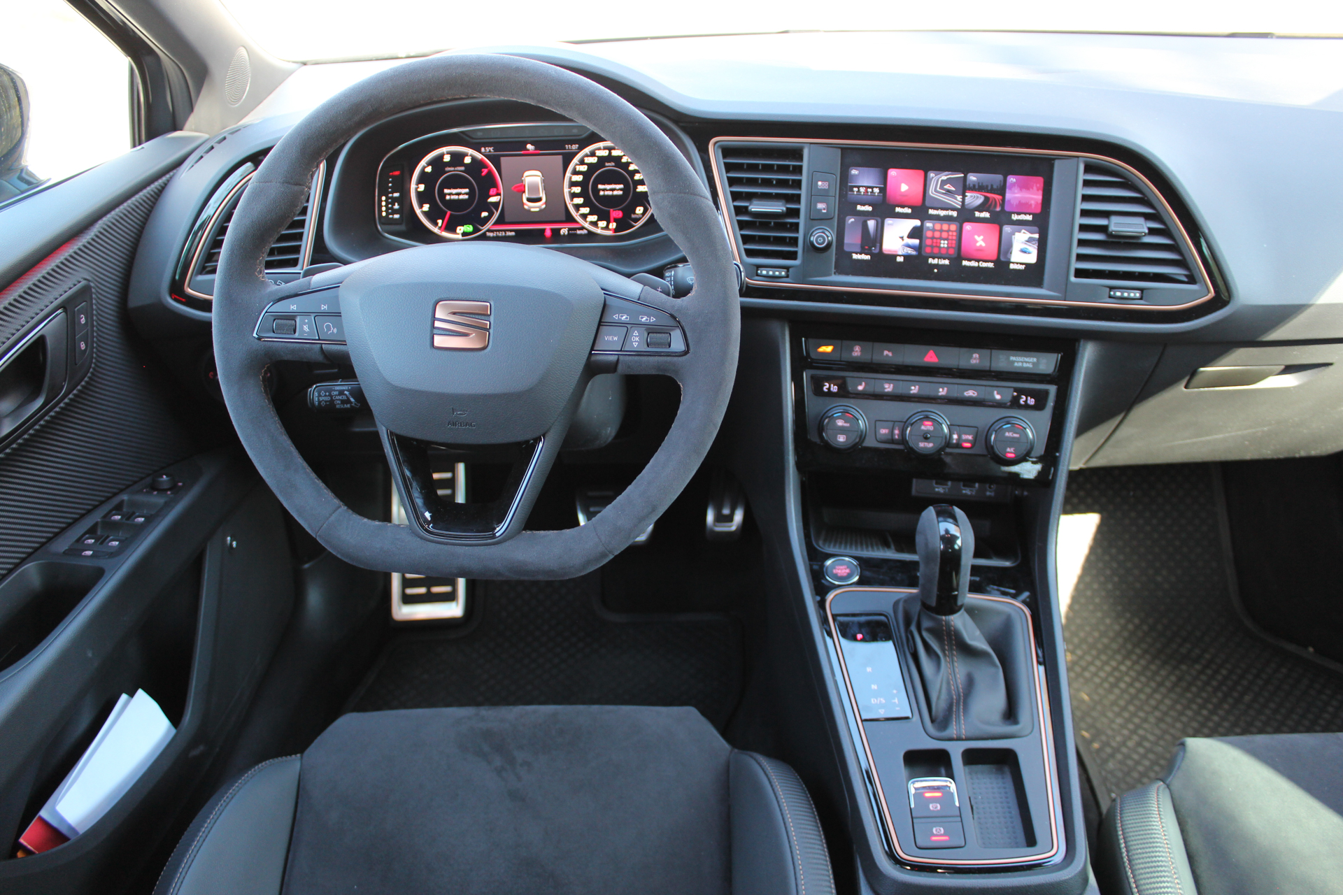 Det som utmärker just R-varianten av Cupra är en kavalkad av koppardetaljer på både insidan och utsidan. De fyra utblåsen, Brembo-bromsarna, och det sänkta chassit avslöjar vad som döljer sig under den hyfsat diskreta exteriören. Utseendemässigt ser bilen tämligen aggressiv ut och bilens distinkta linjer lyckas väl med att framhäva dess spanska flärd. På insidan möts man av ett utdaterat infotainmentsystem och den hel del hårdplast. Den Alcantara-klädda ratten, inläggen i fake-kolfiber, samt koppardetaljerna pekar på bilens prestandaorienterade anda men är inte särskilt smakfulla.