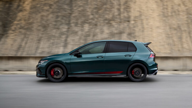 Volkswagen Golf GTI EDITION 50 får samma karosseribehandlingar som Clubsport-modellen men med lite nya fälgar och en och annan dekal. Vidare går den att få i en trevlig grön kulör som rimmar förvånansvärt bra med de röda detaljerna.