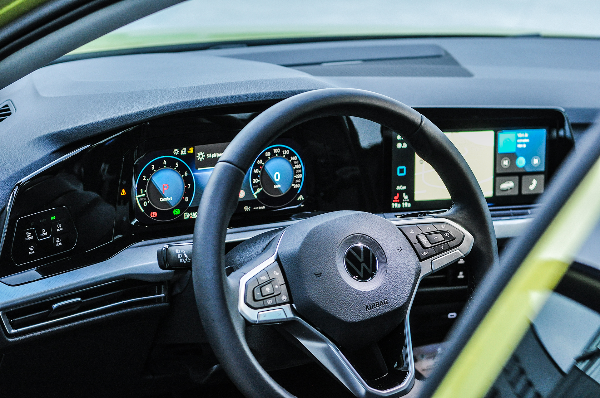 Drivlinorna har fått sina obligatoriska generationsuppdateringar, men i grunden är det samma MQB-komponenter som vi sett förut. I nuläget kan Golf beställas med tre olika drivlinor, men långt fler är på väg. Du kan förvänta dig att läsa fler tester på vår hemsida i takt med att dessa lanseras. Den här gången var vår testbil utrustad med det i nuläget mest intressanta alternativet, vilket är en 150 hästkrafter stark bensinfyra med sju-stegad dubbelkopplingslåda och mildhybridteknik som går under benämningen eTSI. Denna drivlina är helt klart bland de absolut bästa i klassen. Motorn är len, växellådan grymt smidig (även om den nya växelväljaren kräver viss inlärning) och bränsleförbrukningen är låg (vi snittade 0,59 liter per mil i blandad körning).
