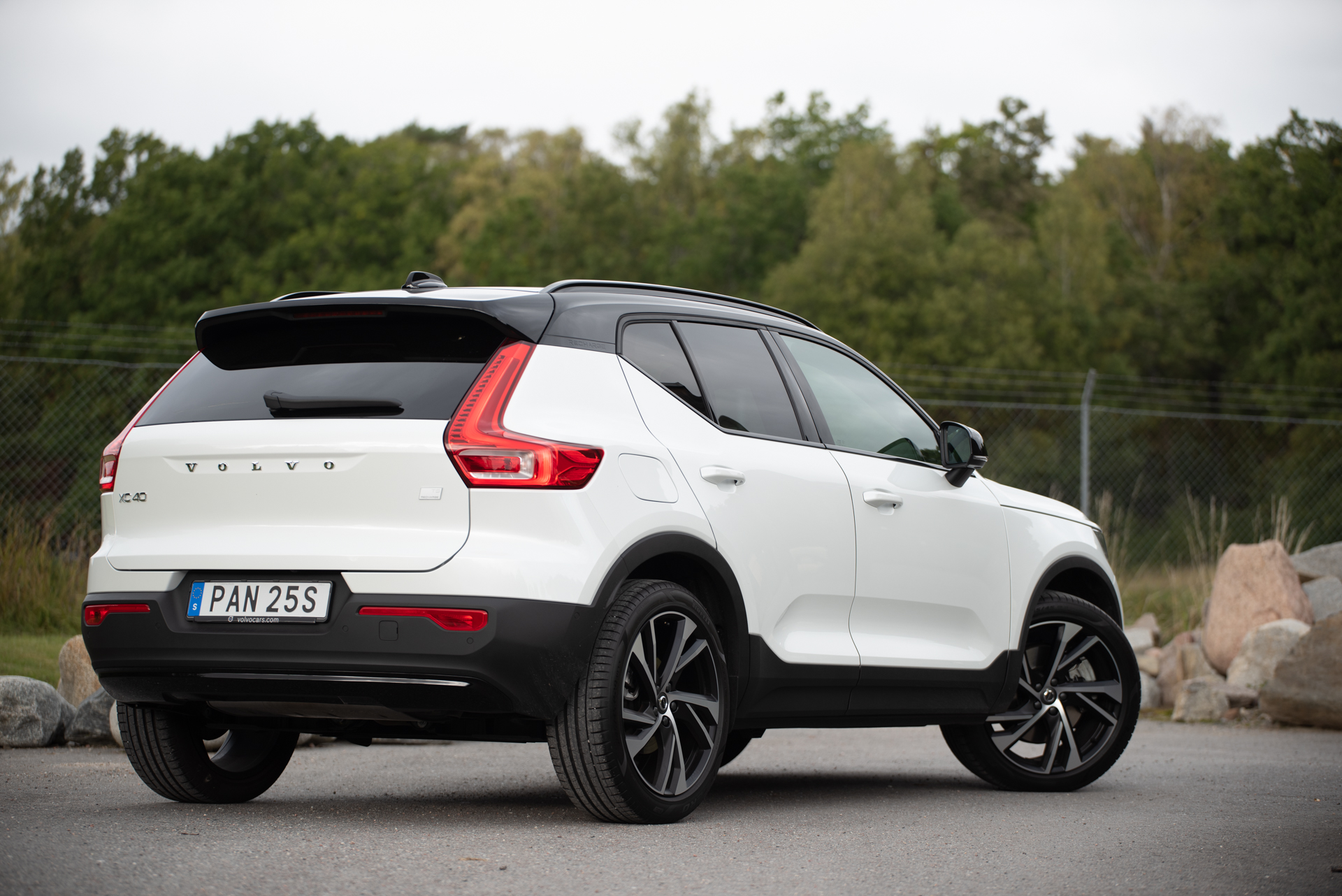 Övergången är för det mesta väldigt sömlös – den lilla trepipen är väldigt tyst och jämn.Som jag tidigare konstaterat tycker jag att XC40 ser riktigt bra ut. Vår testbil var försedd med så kallat R-Design-paket och den vita lacken med det kontrasterande svarta taket gjorde susen.