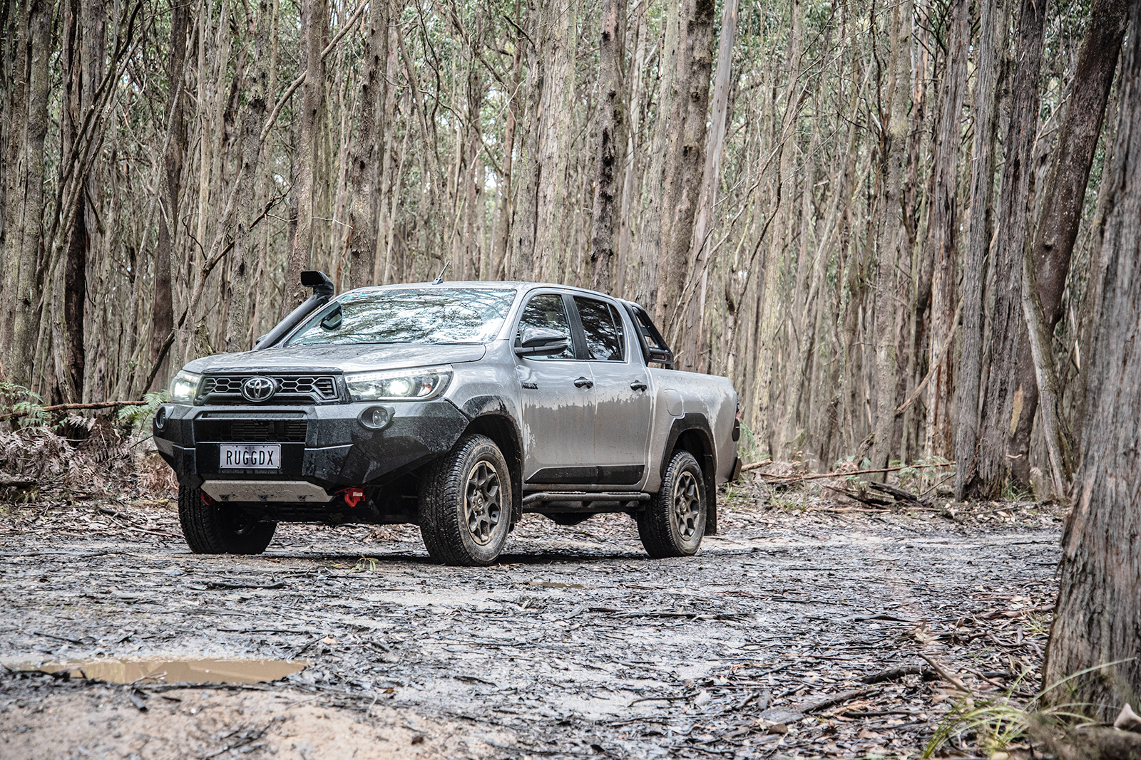 Vår färd började i Melbourne och för att utforska om den lever upp till sitt namn beslöt vi oss för att åka till en närliggande nationalpark, drygt en timmes färd bort. Den är fullständigt smockad med terrängspår av varierande svårighetsgrad och det är en optimal plats att testa bilens kompetens på, ett steg i taget. Som sagt var däcken direkt olämpliga för terrängkörning men med det sagt fanns det en snorkel och väldigt synliga bogseröglor, något som vi sannerligen kom att ha användning av…