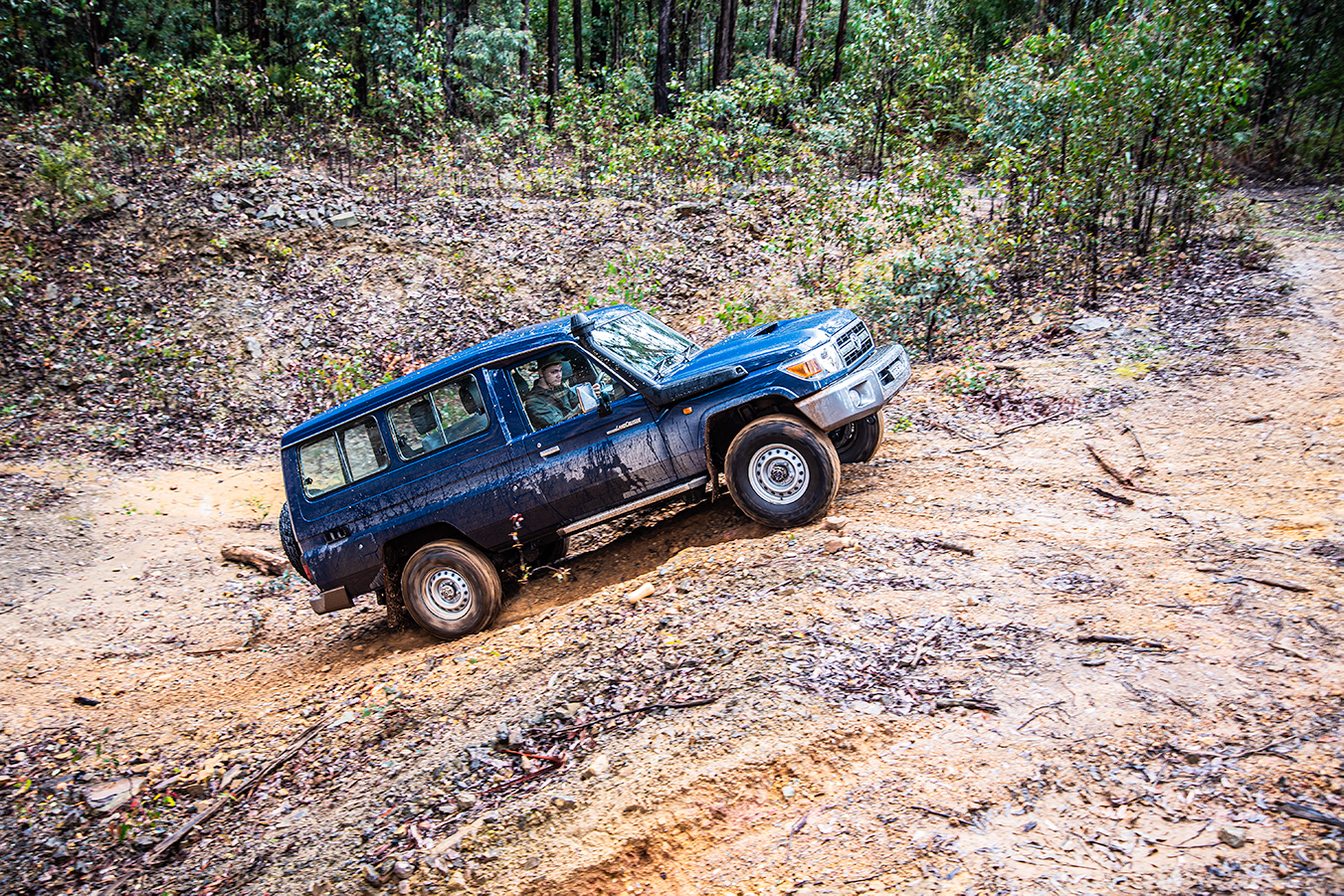 Toyota Land Cruiser 70 går att få i en rad olika karossutföranden av vilka pickup-versionen verkar vara den mest populära i Australien. Vår testbil var dock av ett mer konventionellt SUV-utförande som kallas ”Troopy” eftersom tanken är att man ska kunna trycka in en hel trupp med soldater i bagageutrymmet. Utvändigt är bilen så praktiskt utformad som fysiskt möjligt, fullproppad med räta vinklar. Här är det funktion före form som gäller. Den enda verkliga utvändiga skillnaden från årsmodell 1984 är att framlyktorna inte längre är runda.