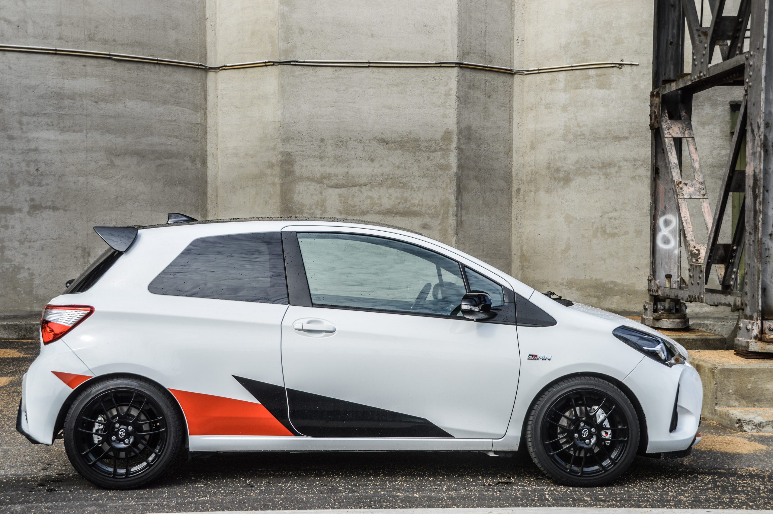 GRMN är för Toyota vad M och RS är för BMW och Audi; en tokig prestandadivision med ett enda syfte: att bygga bilar som är så roliga som möjligt. Namnet står för Gazoo Racing Meister of Nürburgring vilket onekligen bådar gott för vad som komma skall. Först ut är lilla Yaris som har fått en superbusig exteriör makeover, en motor med oceaner av kraft, och en fjädring sänkt med 24 millimeter. 24 millimeter! Det är i sammanhanget lika mycket som om jag skulle operera bort mina ben. Resultatet är en riktigt elak småbil med riktigt sportiga ambitioner.