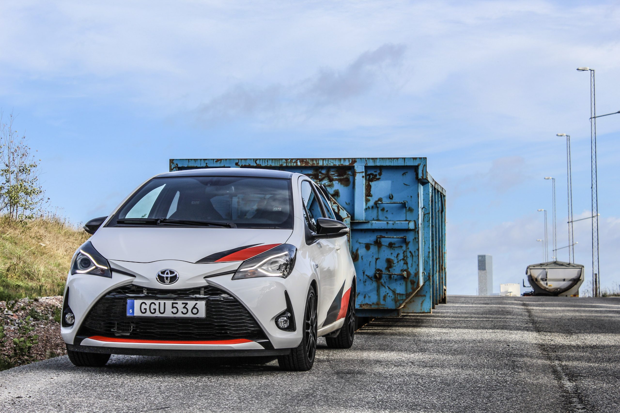 BMW, Mercedes och Audi är självklara märken att nämna i samband med prestandamodeller. Toyota är inte det. Ord som ”hybrid” och ”Prius” klingar knappast särskilt väl med spänning och adrenalin och det vill Toyota nu råda bot på med sina GRMN-bilar, en serie som ska krydda till modellutbudet. Först ut är Yaris GRMN som vi körde tidigare i år på bana i Barcelona. Nu har det blivit dags att testa den på hemmaplan. Låt oss därför lägga i Högsta Växeln och recensera Toyota Yaris GRMN.
