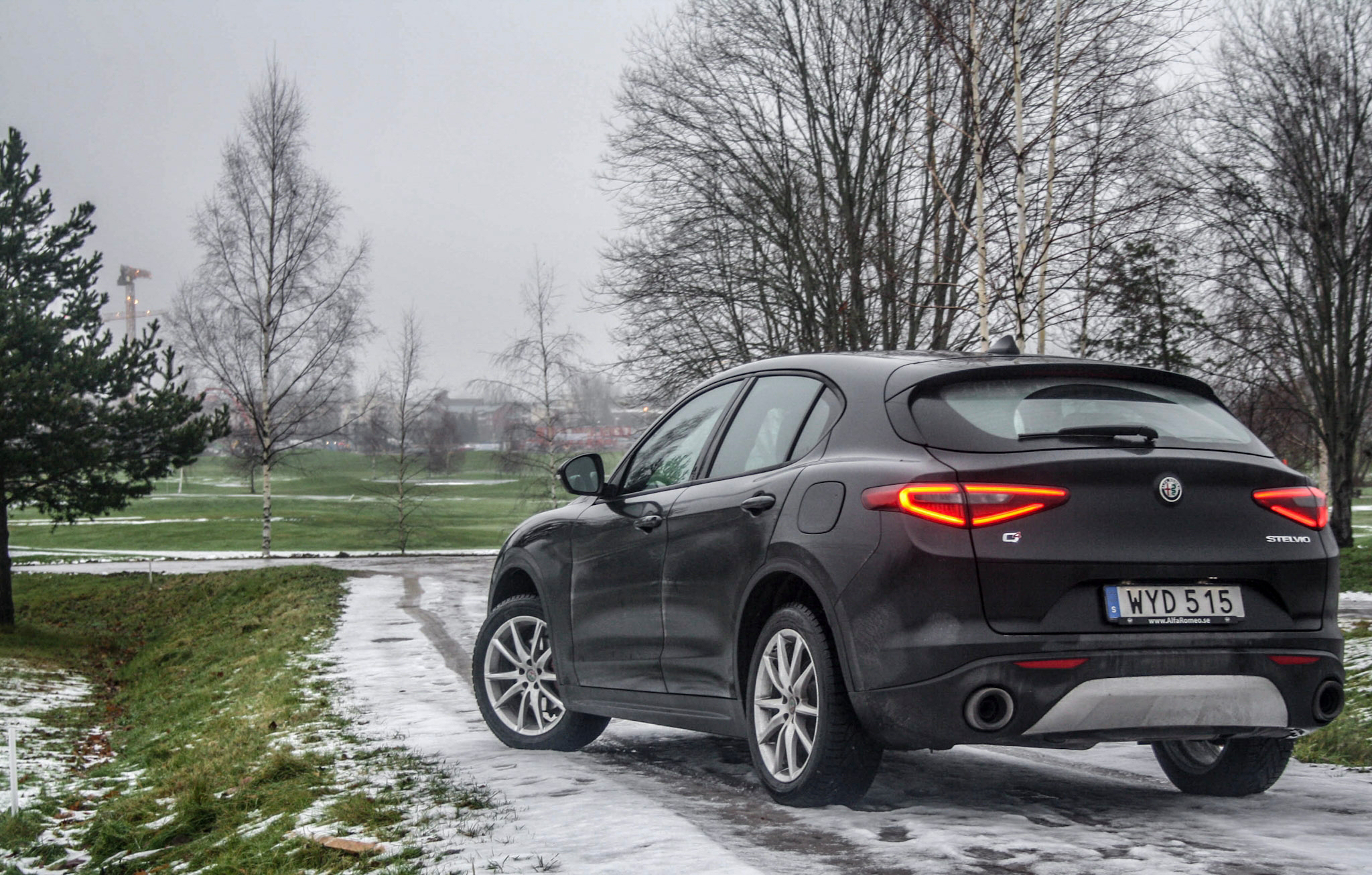 Stelvio kan skicka upp till hälften av sin kraft till framhjulen, men i sitt utgångsläge är bilen bakhjulsdriven. Detta märks lika tydligt som spilld espresso på en vit skjorta, inte minst i form av bilens goda kurvtagningsförmåga.