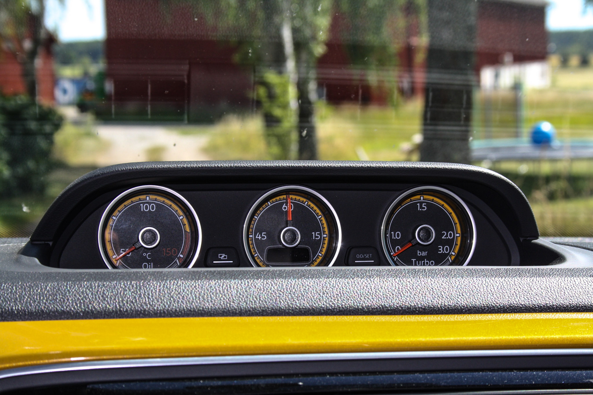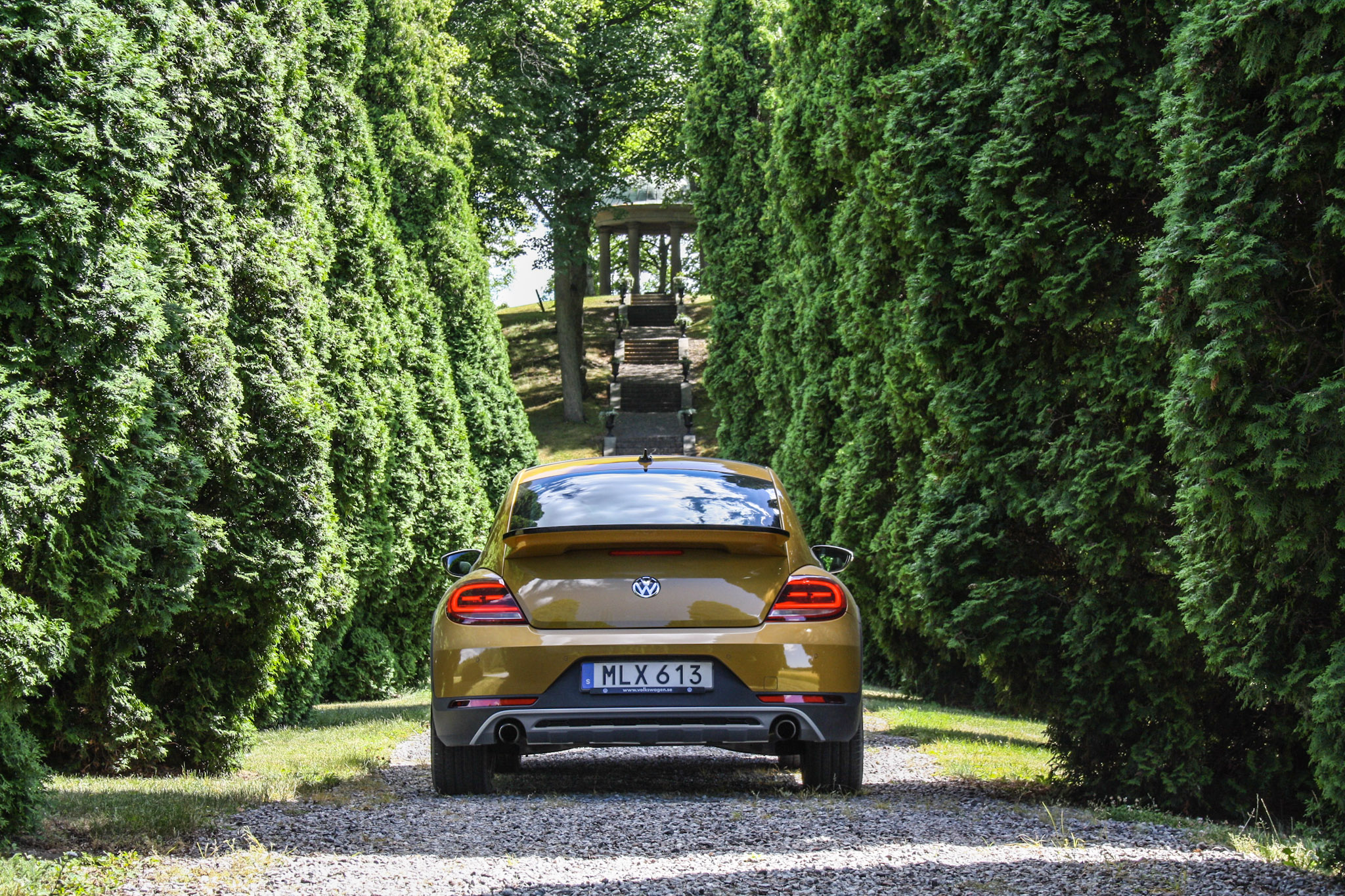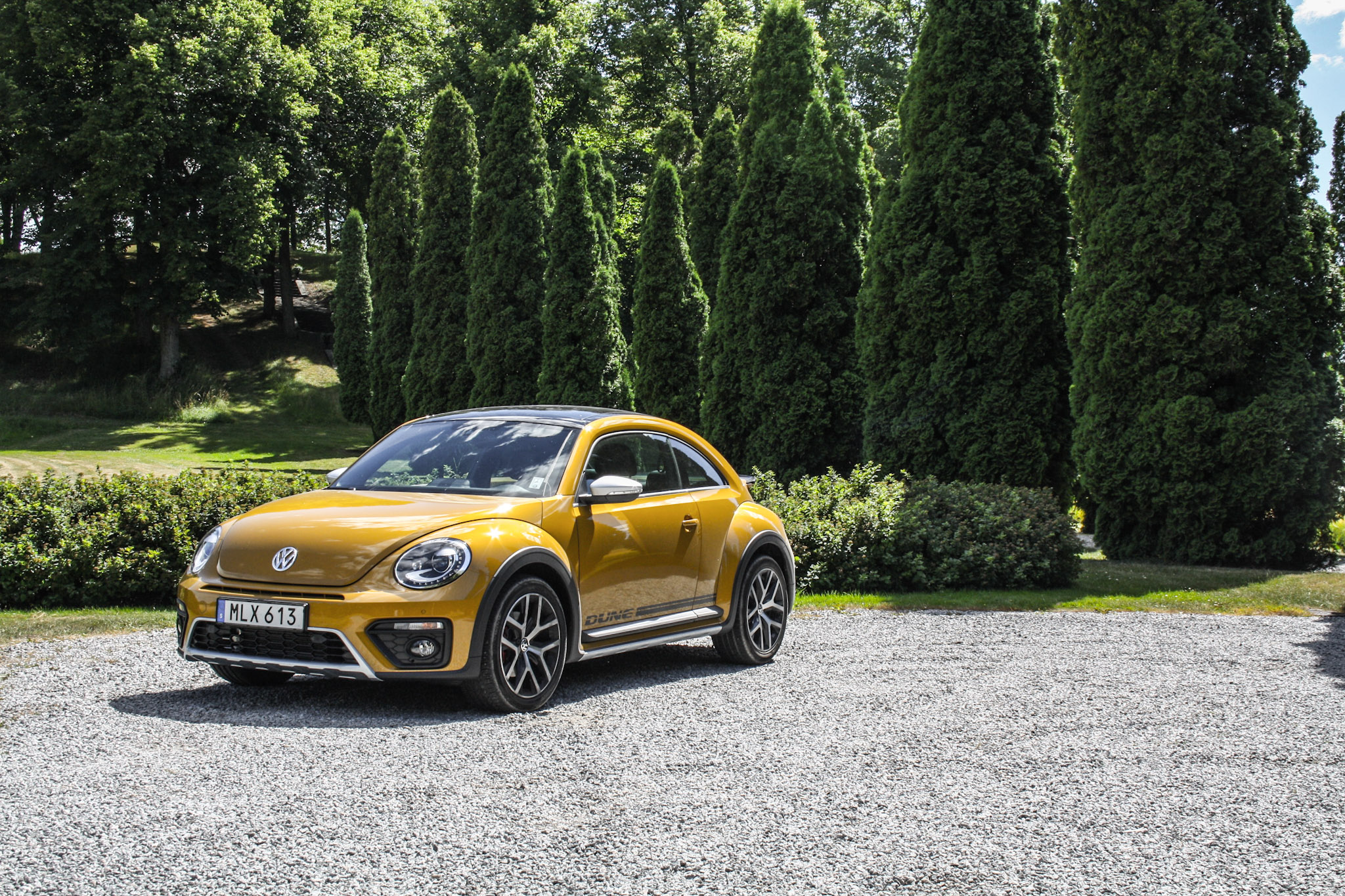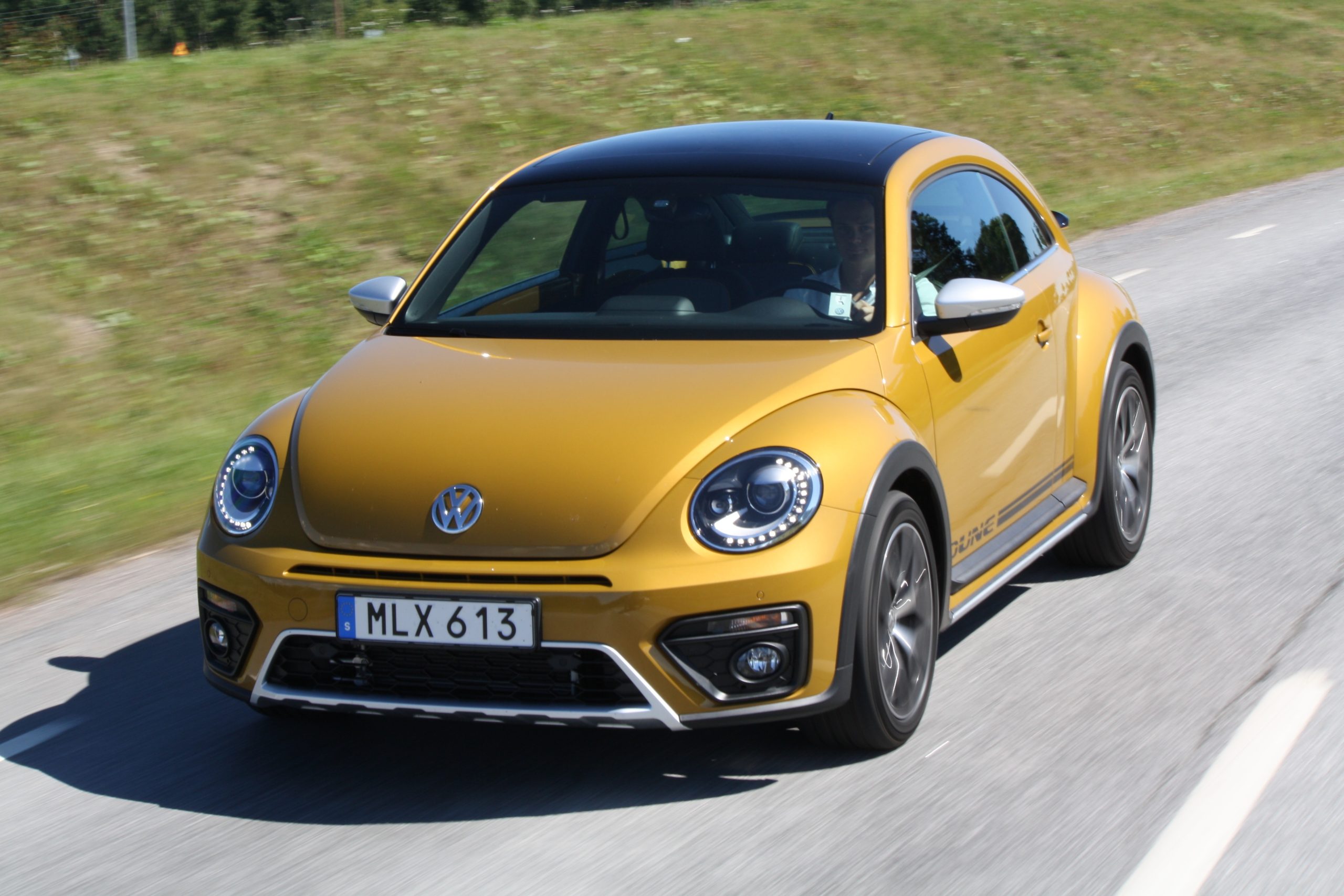Bilen vi hade var inte en vanlig Beetle, utan en Dune. Det innebär att det är en sportigare version än den vanliga, samt att den har en offroad-design. Likt Audis ”Allroad” och Volvos ”Cross Country” innebär detta att bilen har 1 cm högre markfrigång än tidigare samt lite svart exteriörsplast här och där som sitter på enbart för syns skull. Dune kan fås med en lack som heter ”Sandstorm Yellow Metallic” och som gör att den på vägarna sticker ut lika mycket som en paradisfågel i ett hönshus.