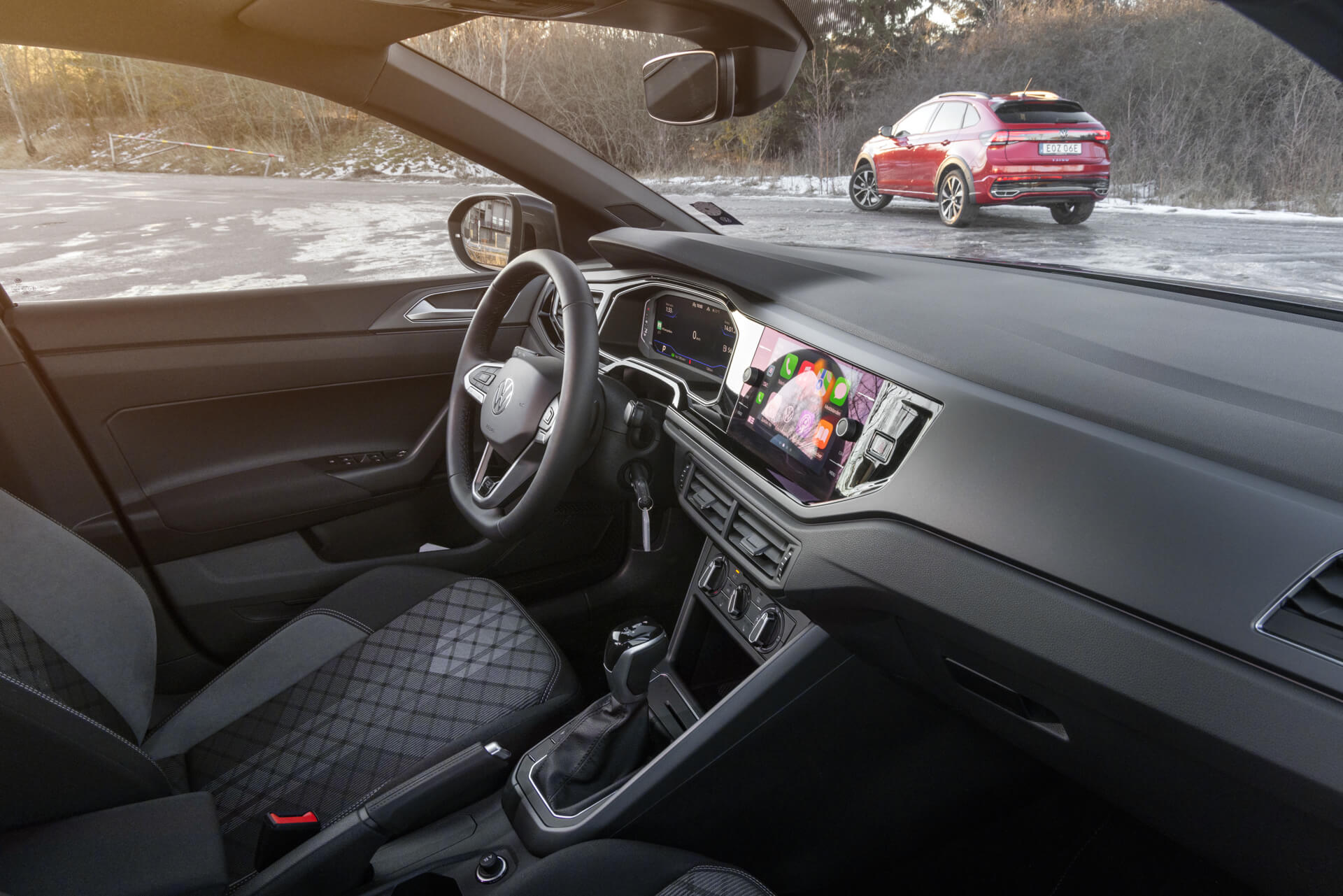 På plats i Södertälje fick vi provköra båda motoralternativen som kommer till Sverige, varav båda är framhjulsdrivna. Instegsmodellen med en trepipig historia på 110 hästkrafter var mer enkelt utrustad med manuella vred för klimatanläggningen, tygsäten, och en enklare instrumentpanel, för att inte tala om en hederlig mekanisk handbroms. Taigo är en modell som är bestämt kompatibel med just Folkvagnsemblemet.