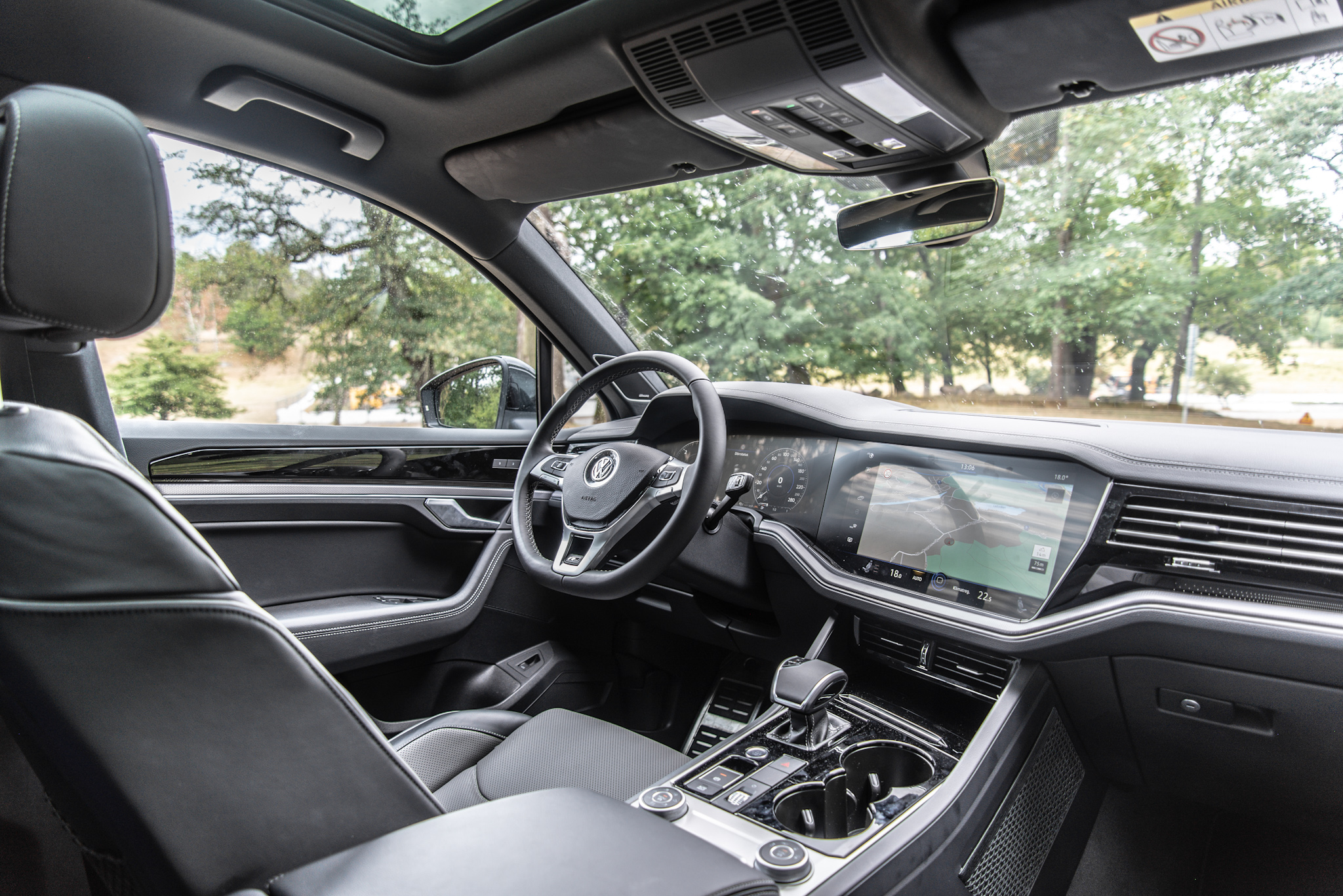 Min kollega Joel nämnde i vår första provkörning av nya Touareg att ”nya Touareg är fullproppad med så många nya finesser att man skulle kunna tro att insidan liknar en flygplanscockpit snarare än en bil.” Volkswagen har nämligen satsat helhjärtat på teknologi med ett blandat resultat. Konceptet som styr inredningens layout – ”Innovision Cockpit” där skärmen i mittkonsolen, instrumentpanelen och diverse reglage ingår är överdrivet komplicerat. Det ser väldigt bra ut men är inte tillräckligt intuitivt.