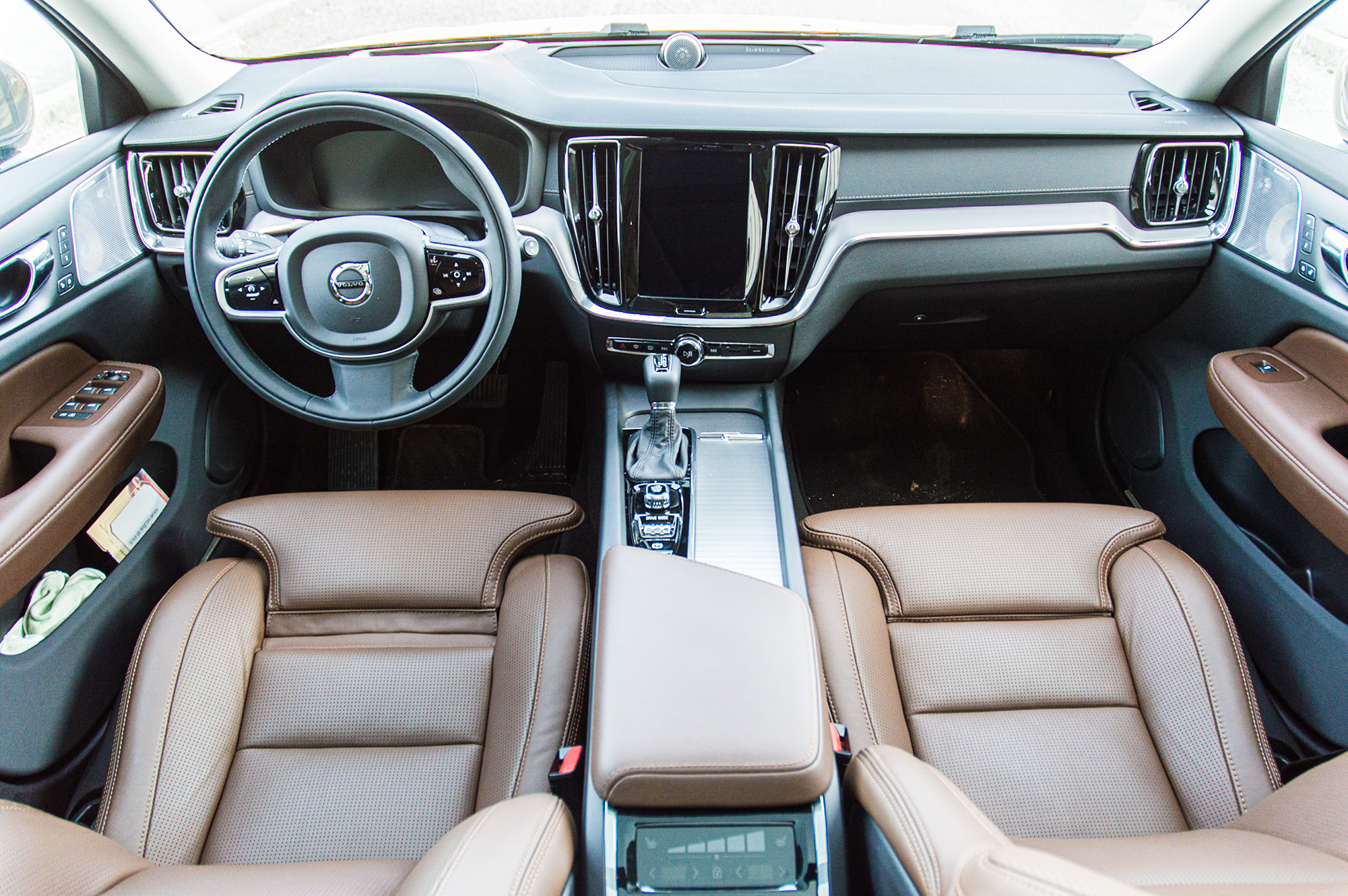 Den prisbelönta interiördesign som togs fram under Robin Pages ledning och finns i alla Volvos SPA-bilar är välkomnande. Personligen upplever jag den som både oerhört intuitiv och snygg; symbolerna för att öka respektive minska avståndet till framförvarande fordon vid användning av den adaptiva farthållaren är ett exempel på hur man lyckats kombinera form med funktion på ett alldeles ypperligt sätt. Pekskärmen i mitten är responsiv och, som bekant sedan innan, väl utformad i termer av mjukvara. Eventuella tvivlare där ute ska veta att den på alla tänkbara sätt utklassar sin knapptelefon till föregångare.