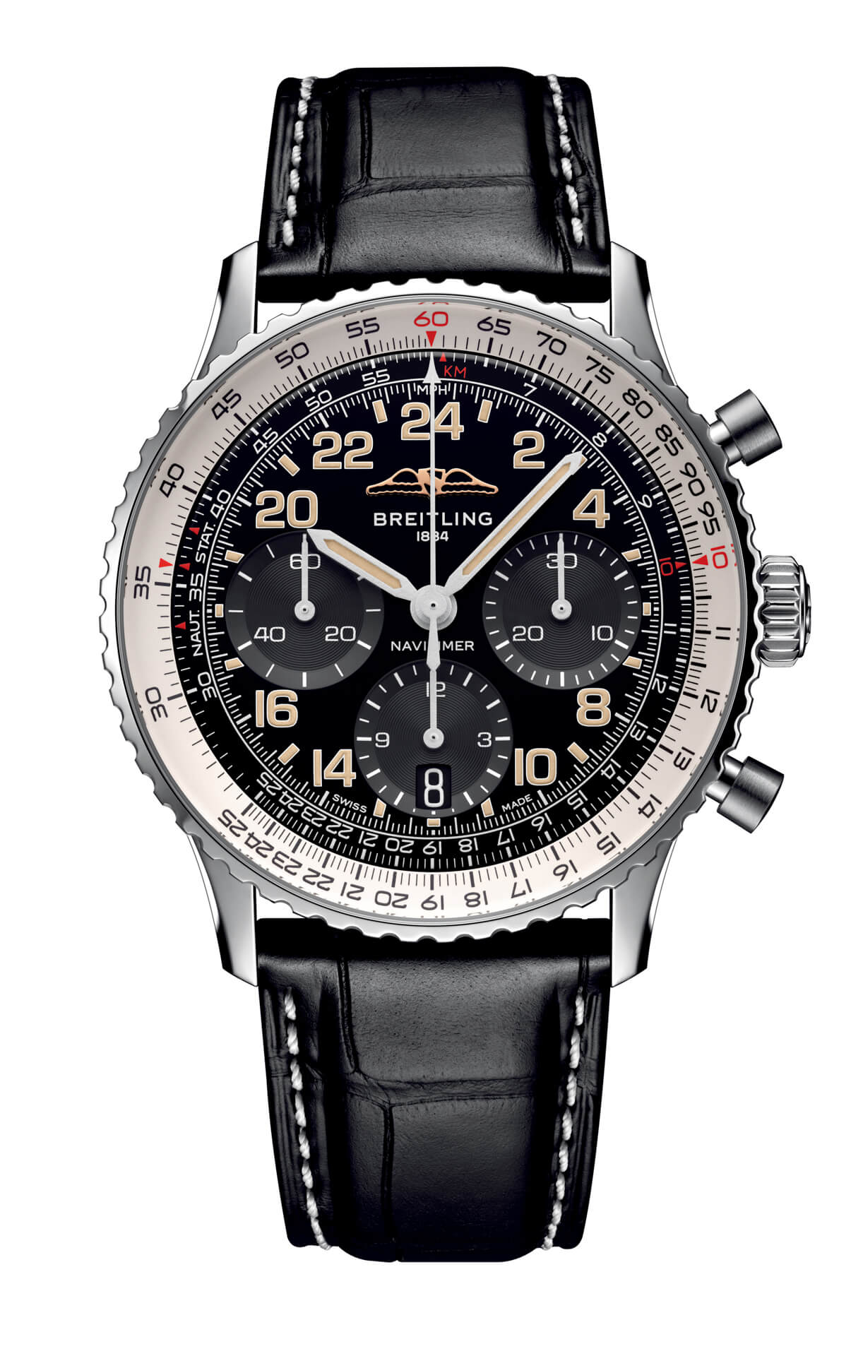 Breitling meddelade igår att de även släpper en modern hyllning av klockan. Nya Navitimer Cosmonaute är en limiterad utgåva som endast kommer att tillverkas i 362 exemplar. Den är skapad för att efterlikna originalet med en helt svart urtavla. Man kan välja mellan ett svart alligatorband eller ett stålfritt sådant.