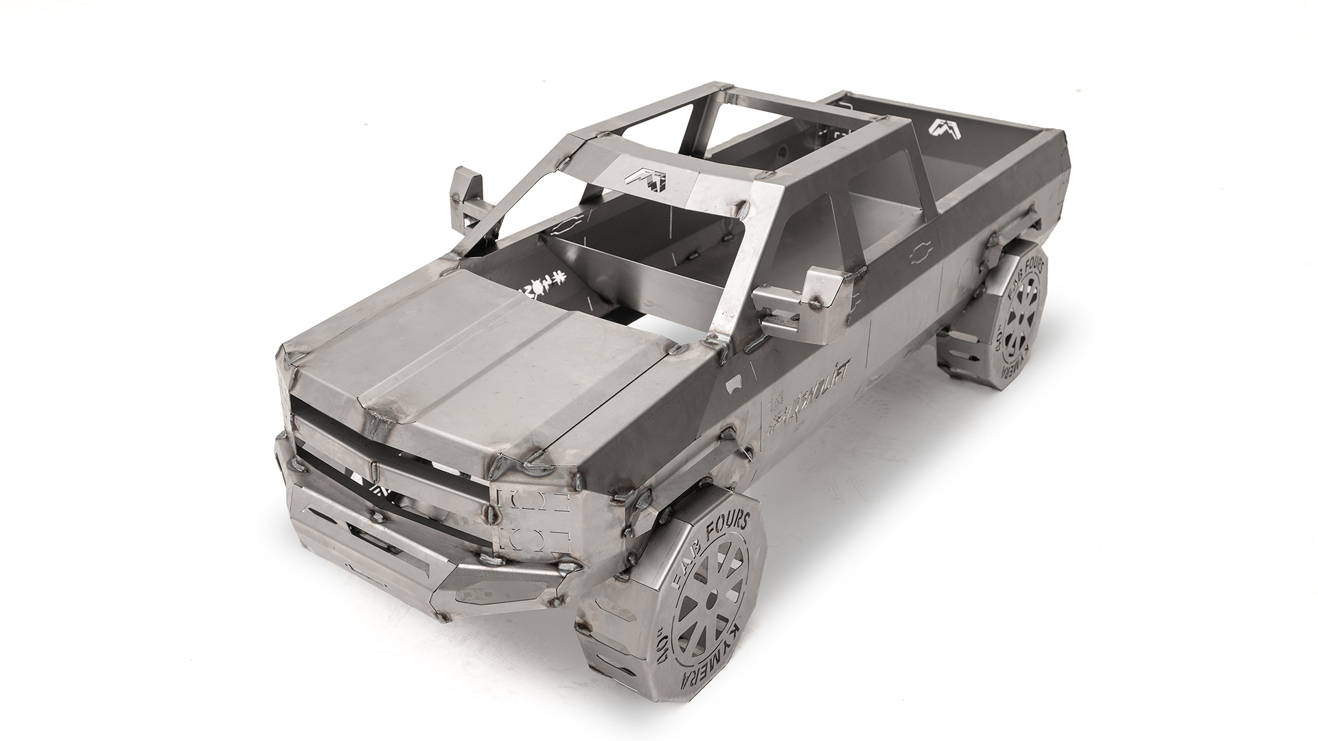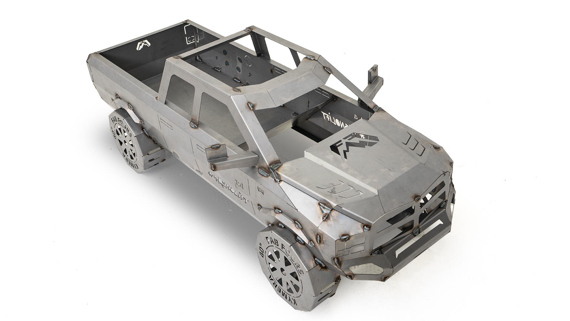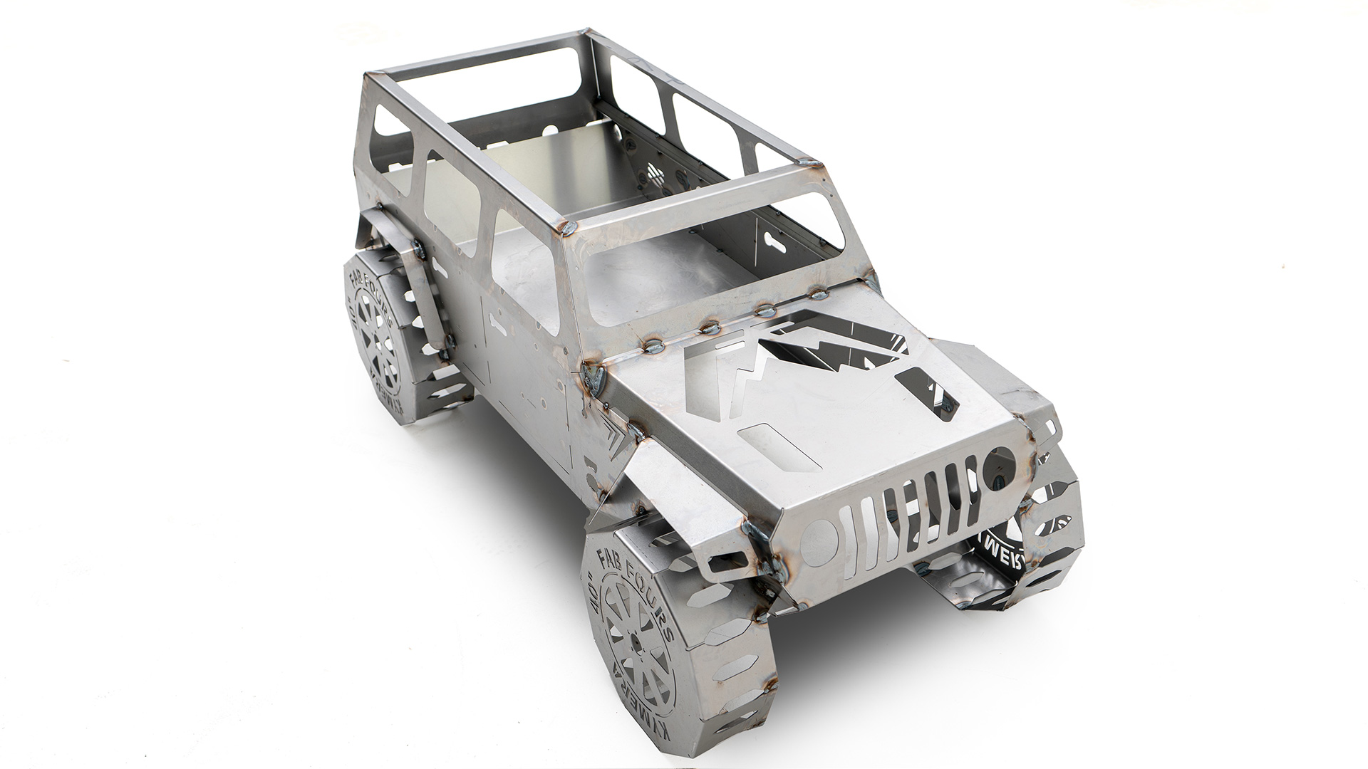 Fab Fours – mest kända för att göra offroadutrustning – är företaget bakom kreationerna. Det finns tre varianter. Gillar man flak kan man antingen köpa en Dodge Ram- eller en Chevrolet Silverado-eldstad. I annat fall är det en Jeep Wrangler som gäller, och den är lika taklös som när vi körde den i Mellanöstern. Efter att man tänt en eld i den är den nog också lika varm.